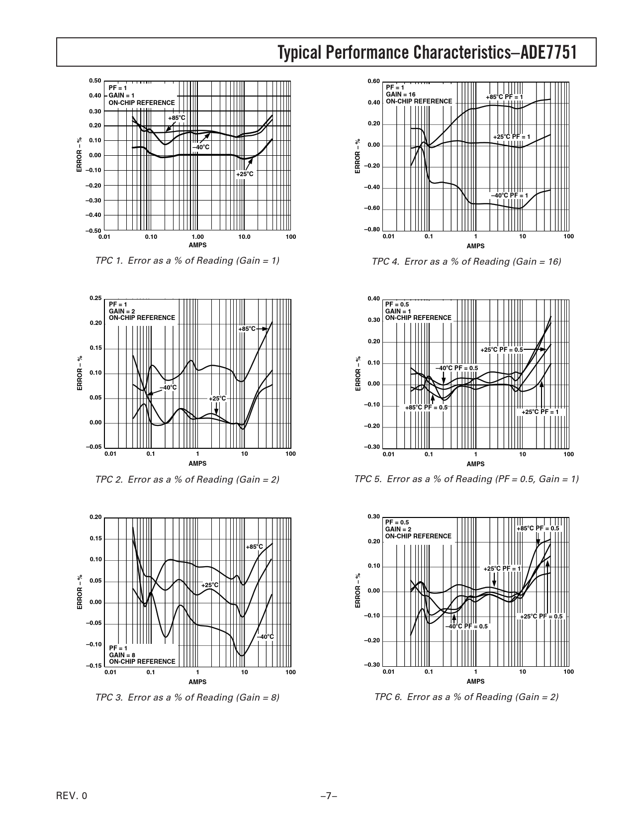 Typical Performance Characteristics–ADE7751. 0.50. 0.60. PF = 1. 0.40. GAIN = 1. GAIN = 16. +85. C PF = 1. ON-CHIP REFERENCE. 0.30. 0.20. +25