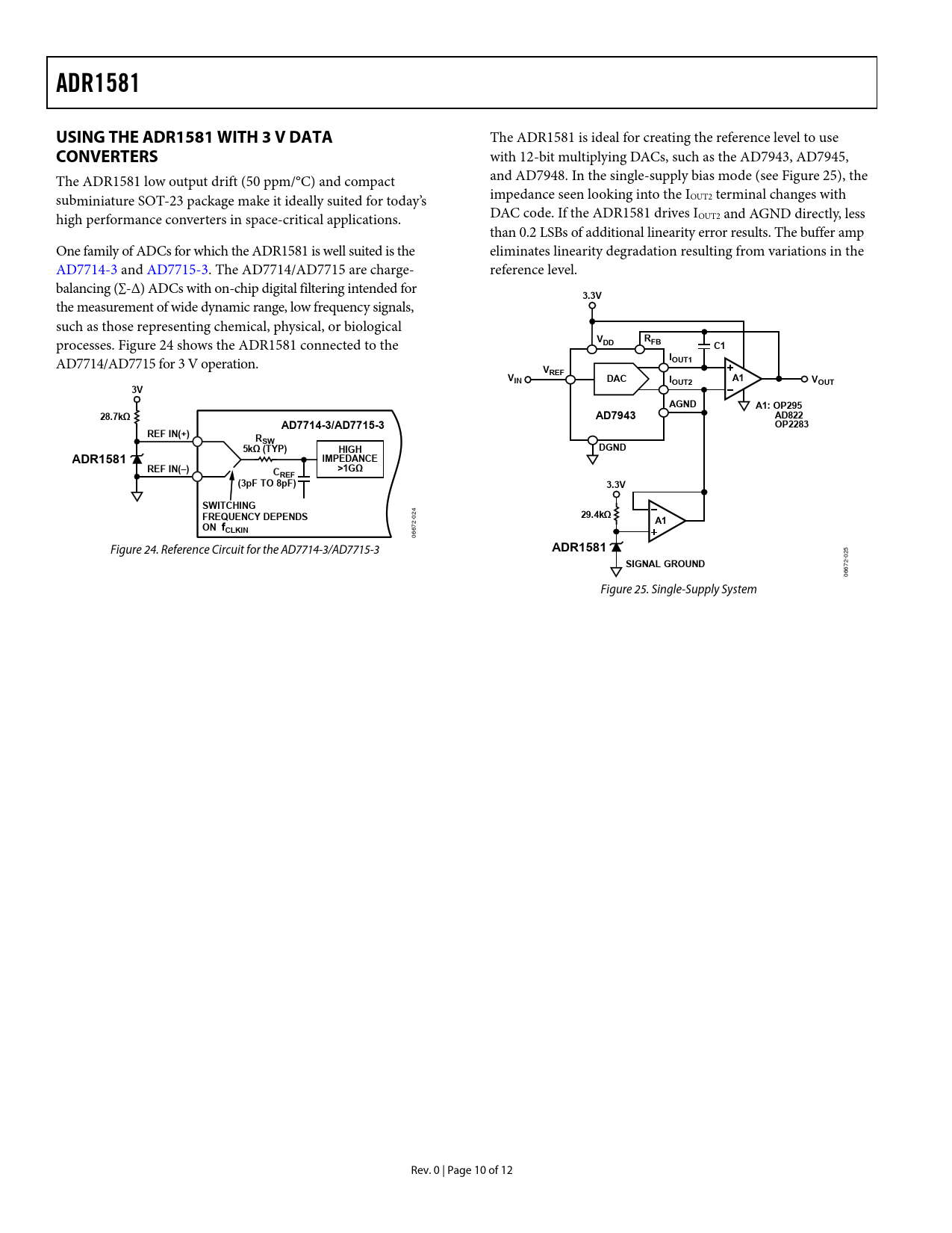 页数 / 页12 / 10 — ADR1581. USING THE ADR1581 WITH 3 V DATA. CONVERTERS. 3.3V. IOUT1. VREF. …