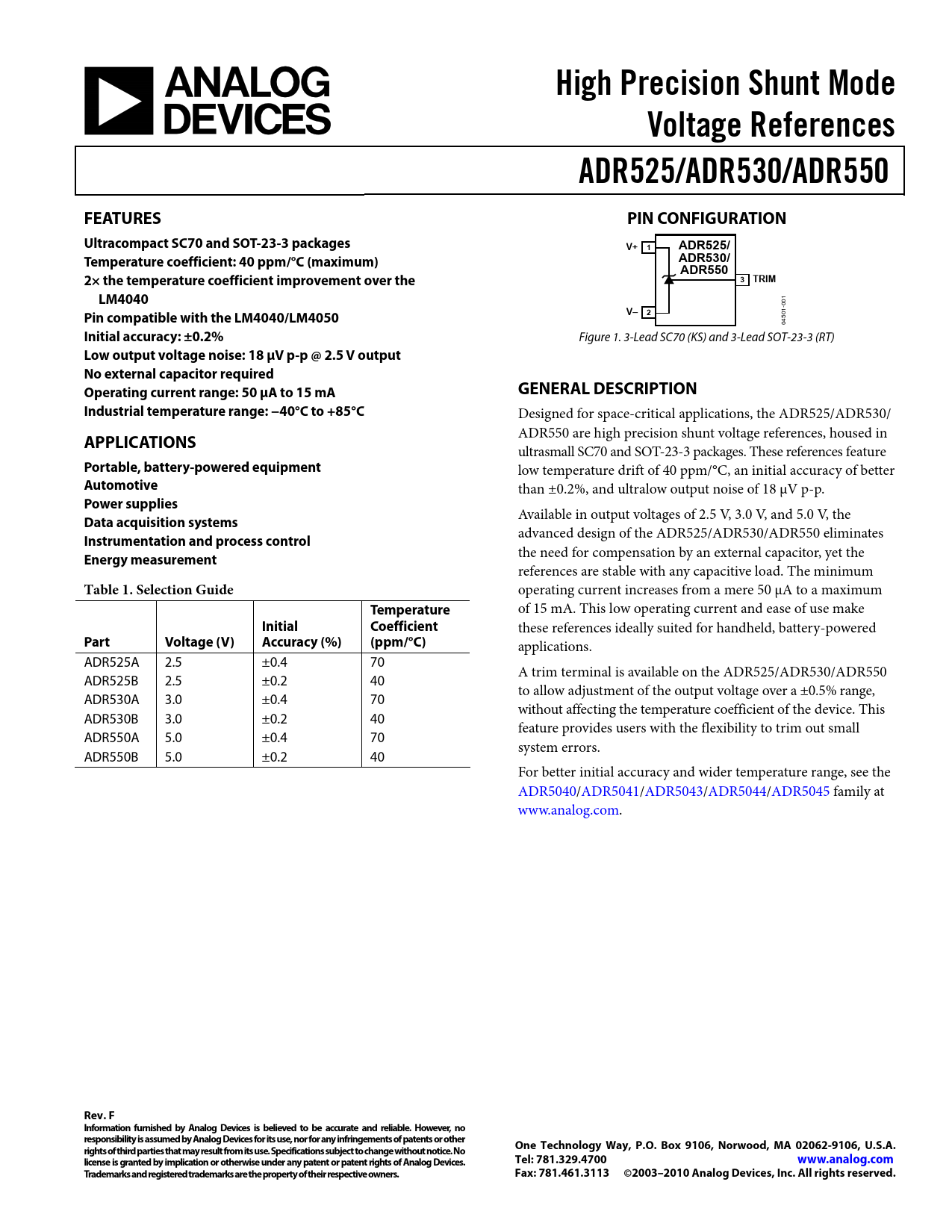 Datasheet ADR525, ADR530, ADR550 (Analog Devices)