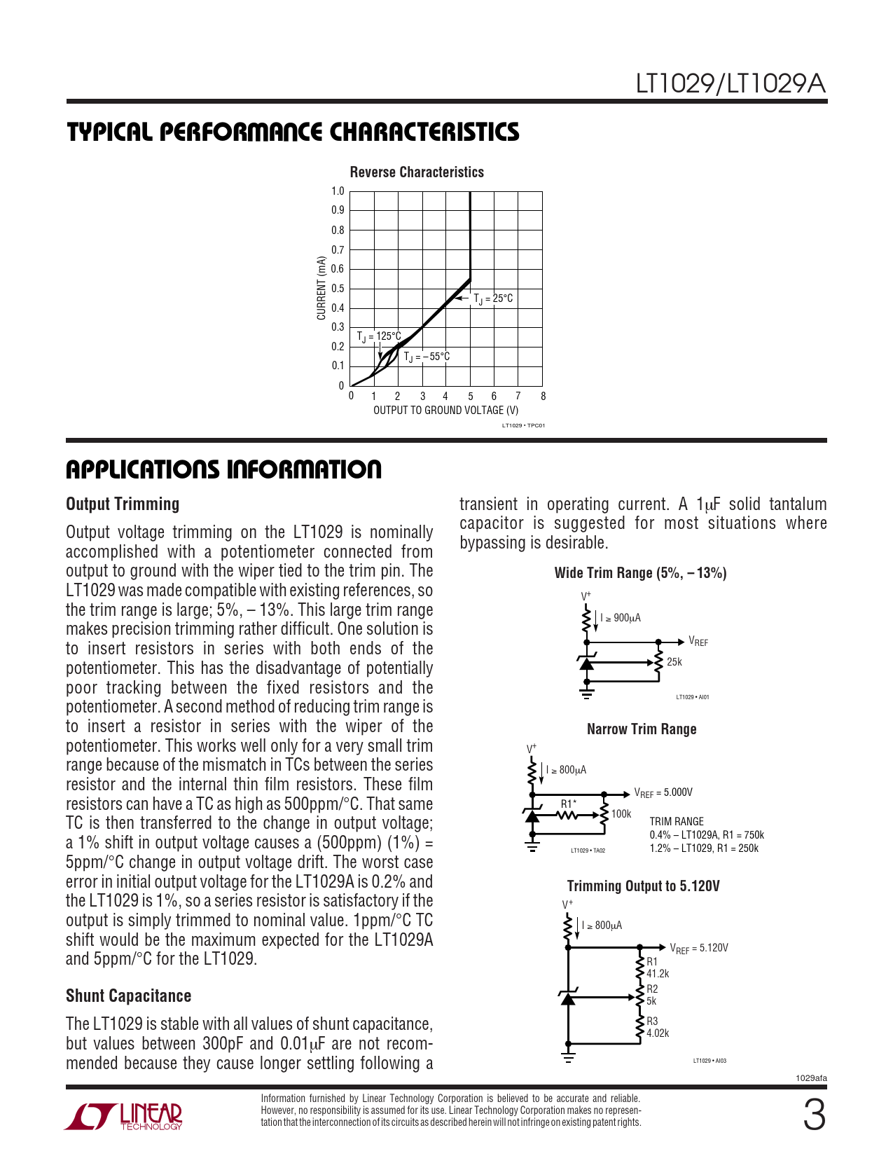 TYPICAL PERFOR A CE CHARACTERISTICS Reverse Characteristics APPLICATIO S I FOR ATIO Output Trimming