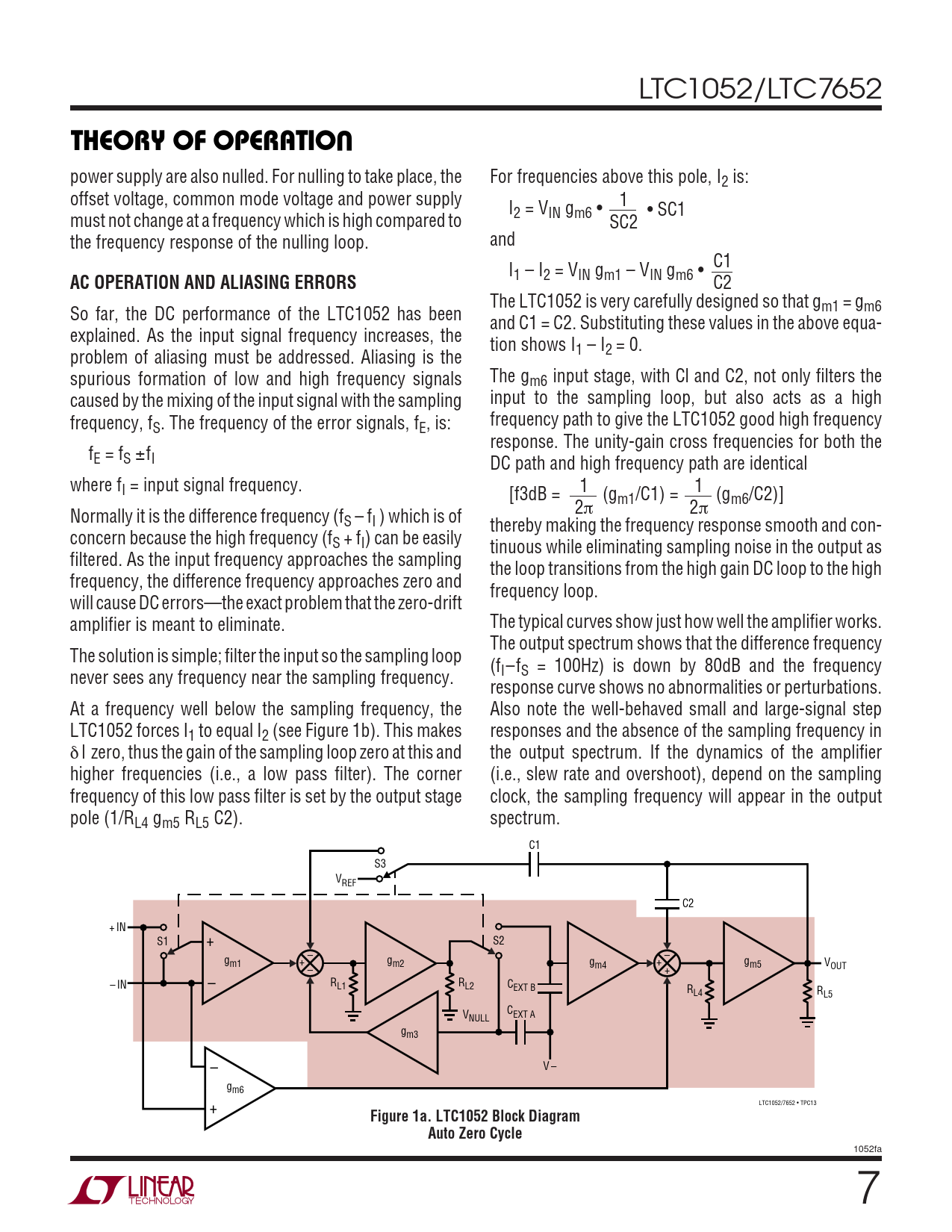 THEORY OF OPERATIO. AC OPERATION AND ALIASING ERRORS. Figure 1a. LTC1052 Block Diagram. Auto Zero Cycle