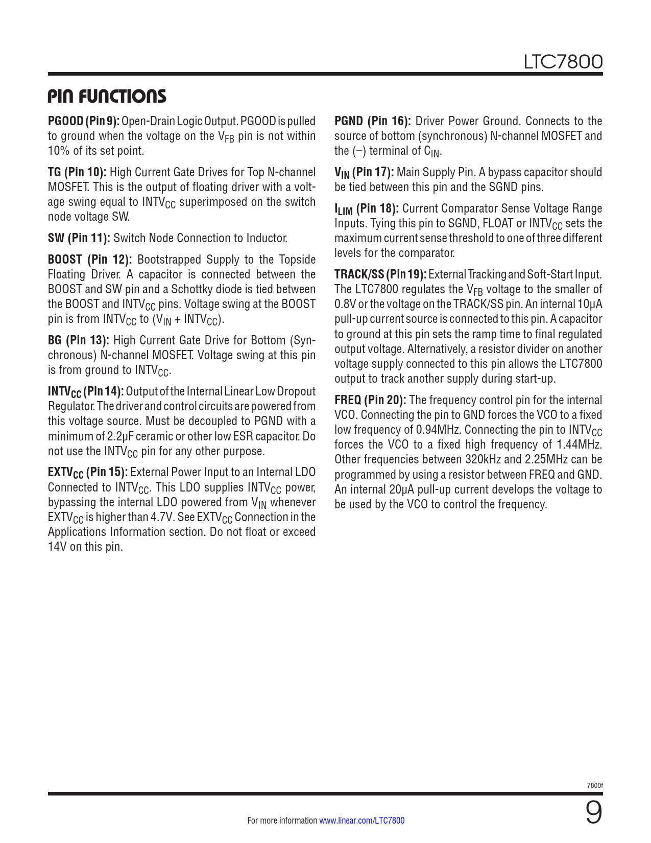 页数 / 页32 / 9 — PIN FUNCTIONS. PGOOD (Pin 9):. PGND (Pin 16):. TG (Pin 10):. VIN (Pin …
