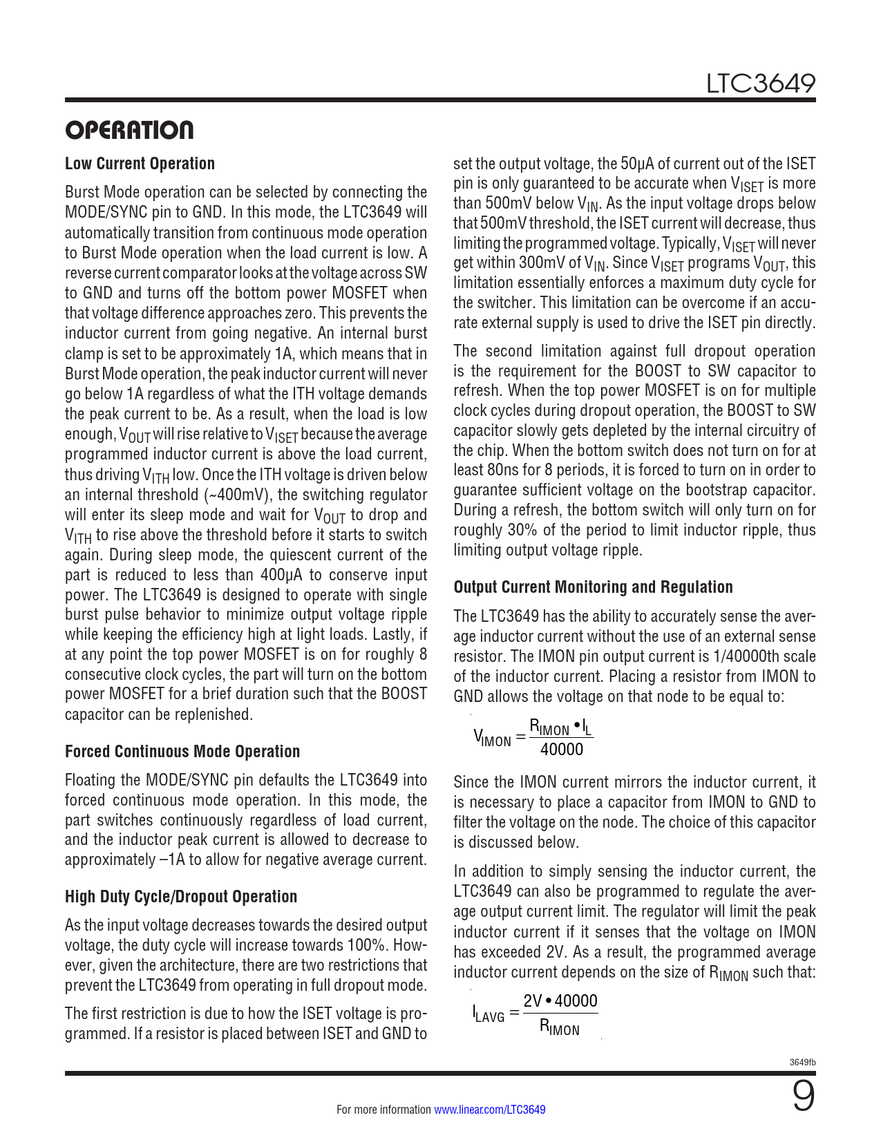 OPERATION Low Current Operation. Output Current Monitoring and Regulation. Forced Continuous Mode Operation