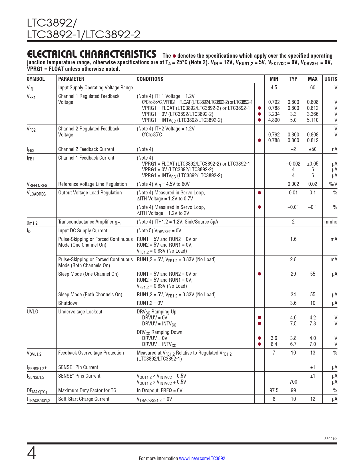 Datasheet LTC3892, LTC3892-1, LTC3892-2 (Analog Devices) - 4