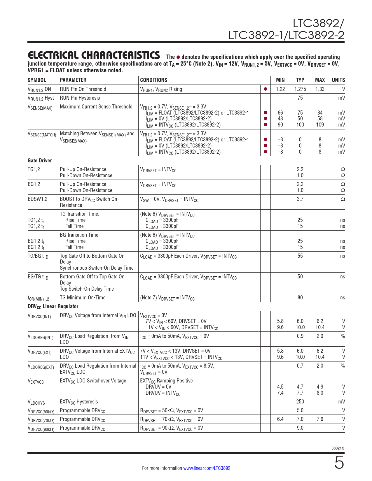 Datasheet LTC3892, LTC3892-1, LTC3892-2 (Analog Devices) - 5