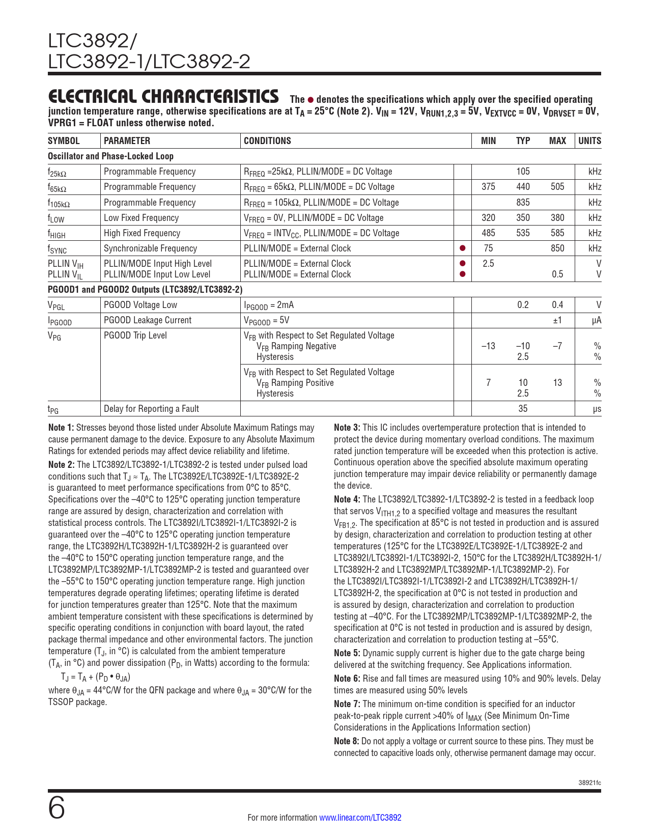 Datasheet LTC3892, LTC3892-1, LTC3892-2 (Analog Devices) - 6