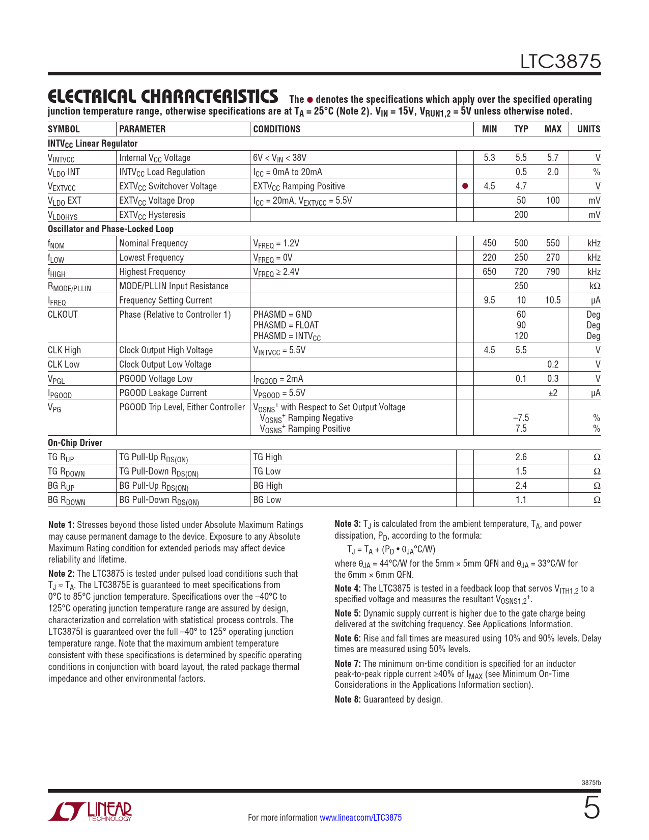 Guaranteed by design. 3875fb For more information www.linear.com/LTC3875 5 Document Outline Features Applications Description Typical Application Absolute Maximum Ratings Pin Configuration Order Information Electrical Characteristics Typical Performance Characteristics Pin Functions Block Diagram Operation Applications Information Typical Applications Related Parts