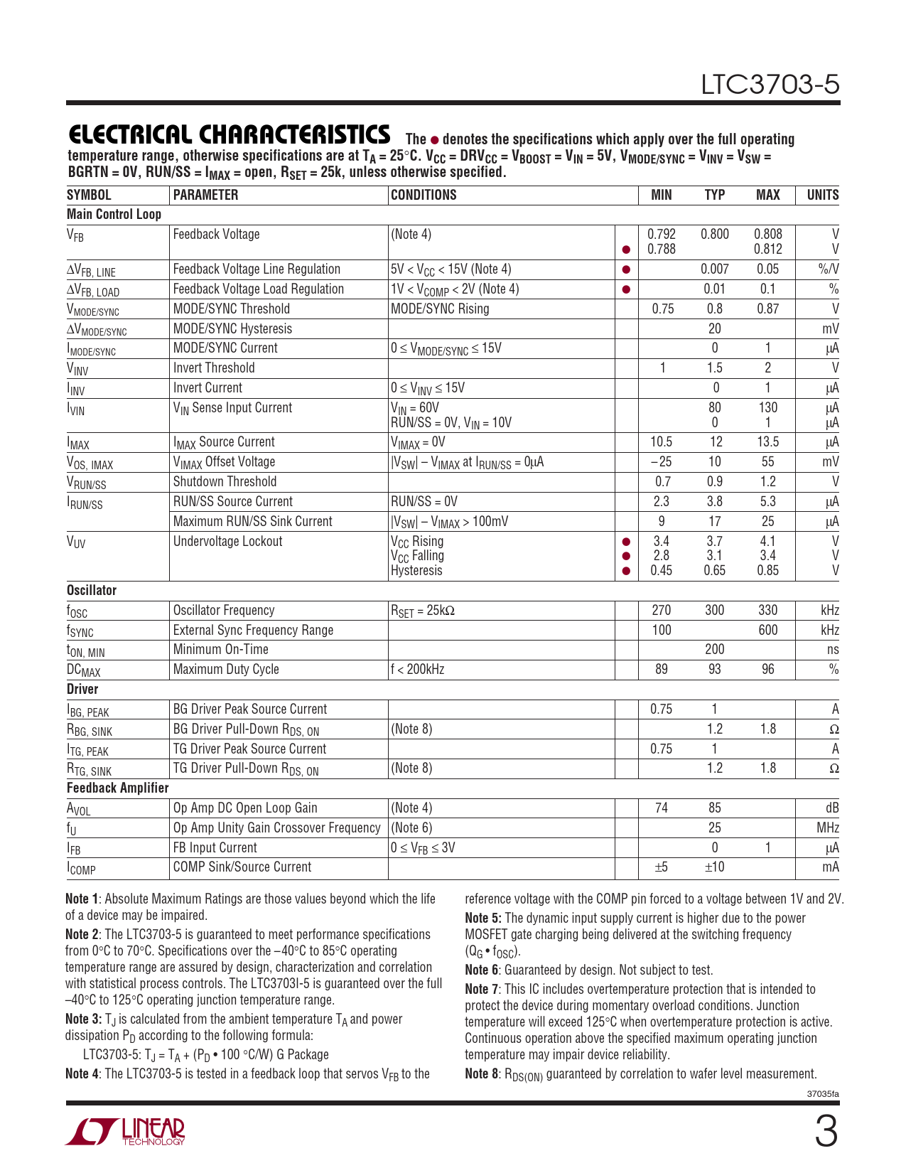 : Guaranteed by design. Not subject to test. with statistical process controls. The LTC3703I-5 is guaranteed over the full