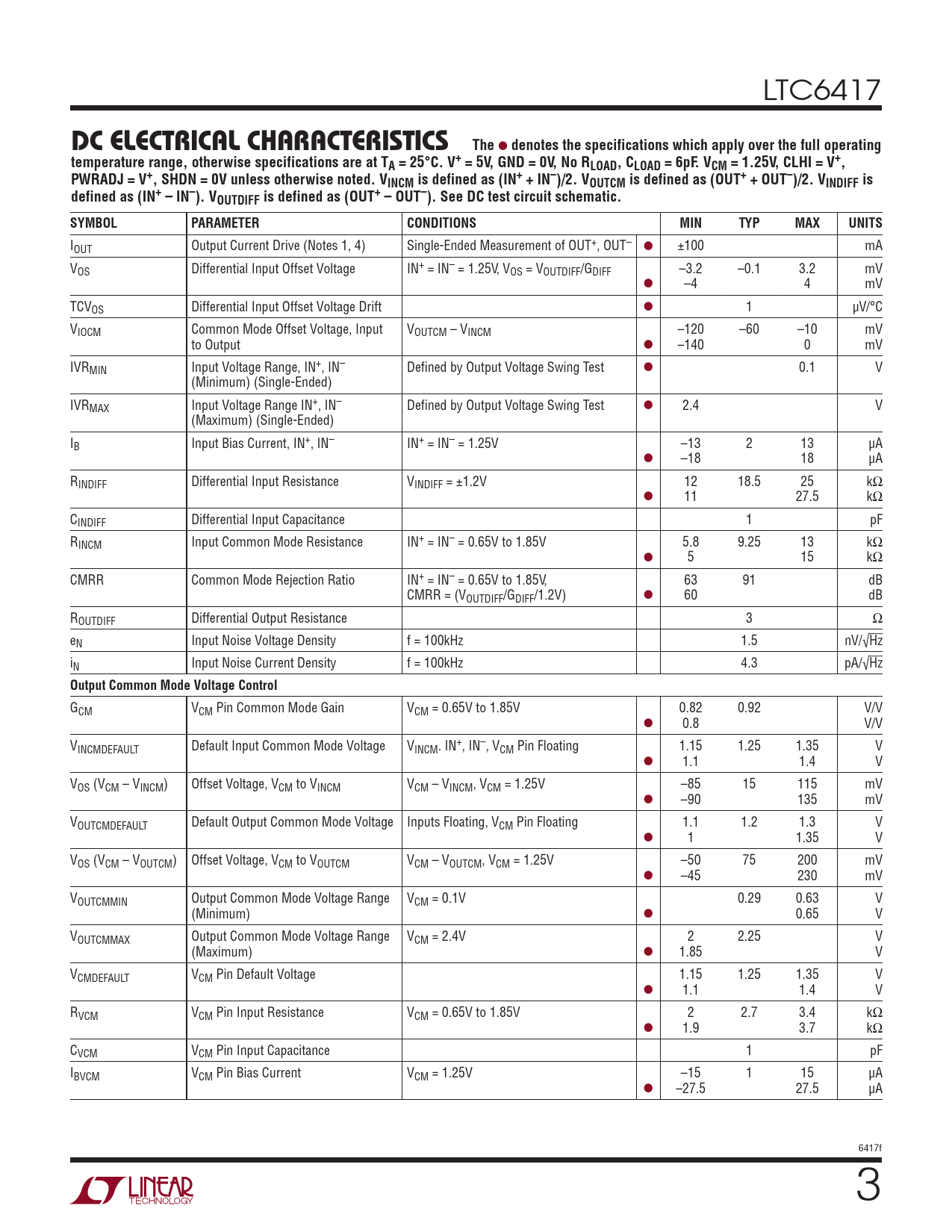 Dc elecTrical characTerisTics. The. denotes the specifications which apply over the full operating