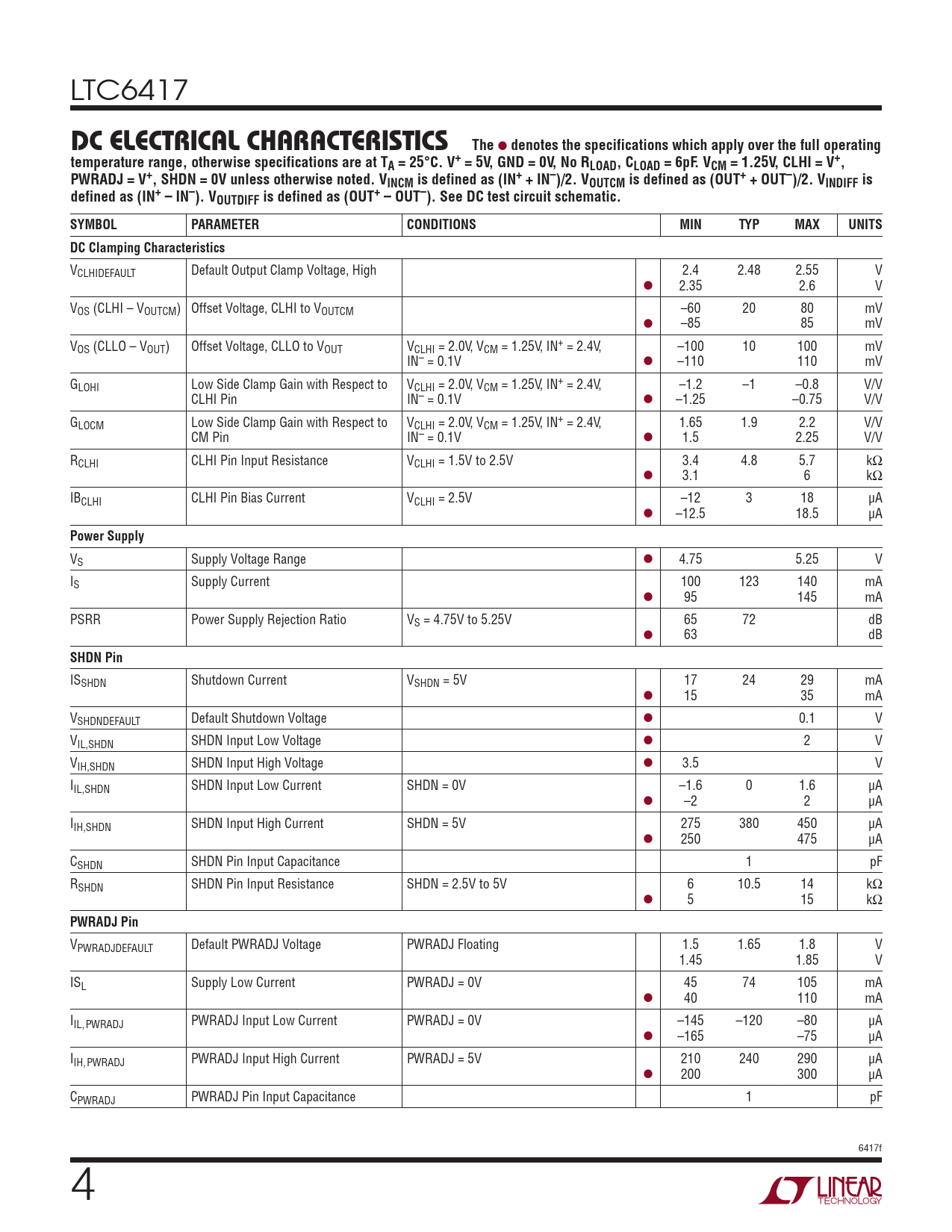 Dc elecTrical characTerisTics. The. denotes the specifications which apply over the full operating