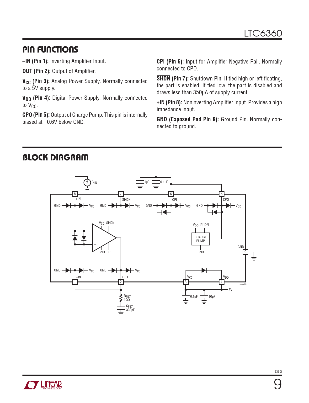 pin FuncTions –IN (Pin 1):. CPI (Pin 6):. OUT (Pin 2):. SHDN (Pin 7):. CC (Pin 3):. VDD (Pin 4):. +IN (Pin 8):. CPO (Pin 5):