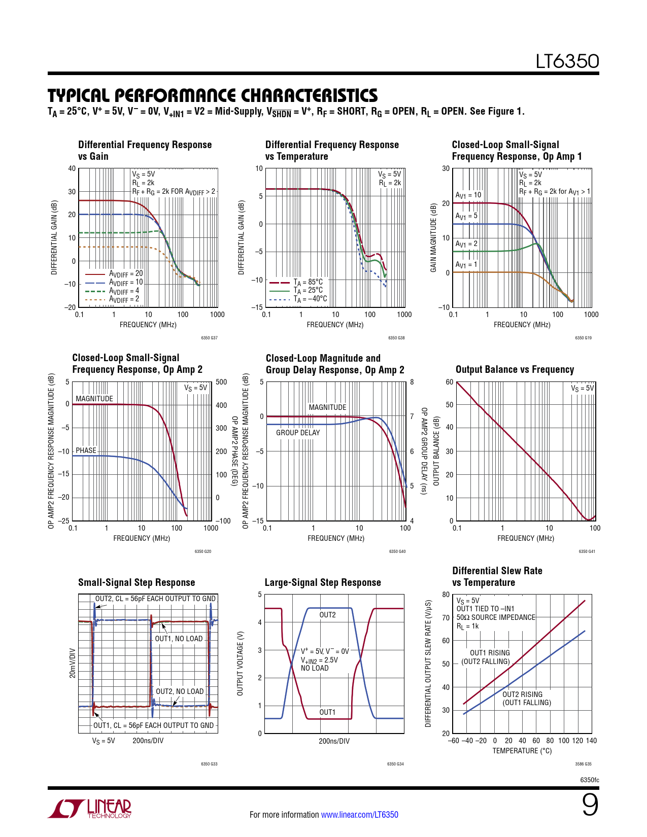 Typical perForMance characTerisTics TA = 25°C, V+ = 5V, V– = 0V, V+IN1 = V2 = Mid-Supply, VSHDN = V+, RF = SHORT, RG = OPEN, RL = OPEN. See Figure 1. Differential Frequency Response Differential Frequency Response Closed-Loop Small-Signal vs Gain vs Temperature Frequency Response, Op Amp 1
