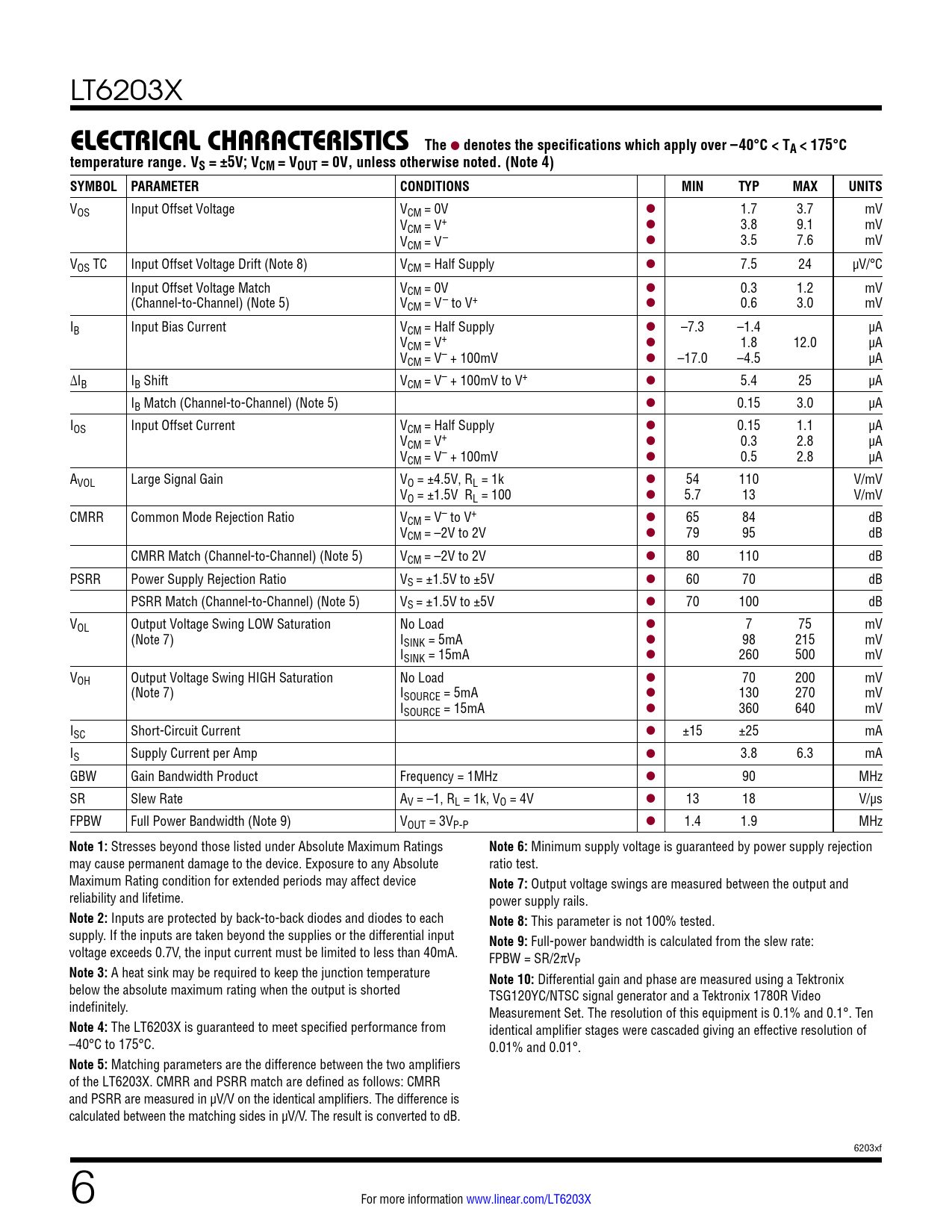 The LT6203X is guaranteed to meet specified performance from identical amplifier stages were cascaded giving an effective resolution of –40°C to 175°C. 0.01% and 0.01°.