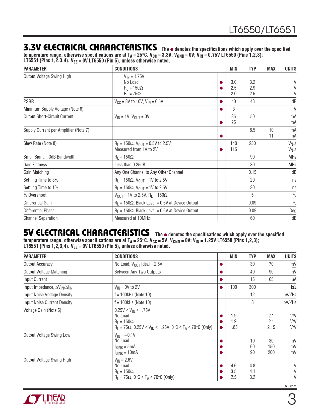 Datasheet LT6550, LT6551 (Analog Devices) - 3