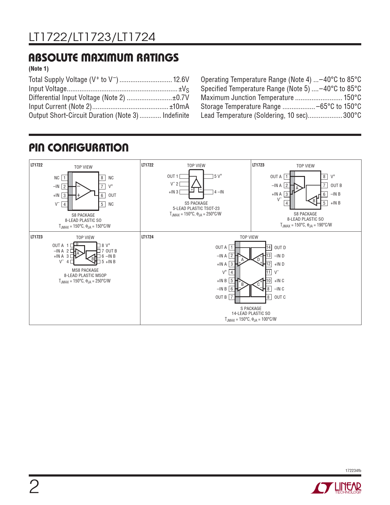 页数 / 页18 / 2 — ABSOLUTE MAXIMUM RATINGS. (Note 1). PIN CONFIGURATION. LT1722. LT1723. …