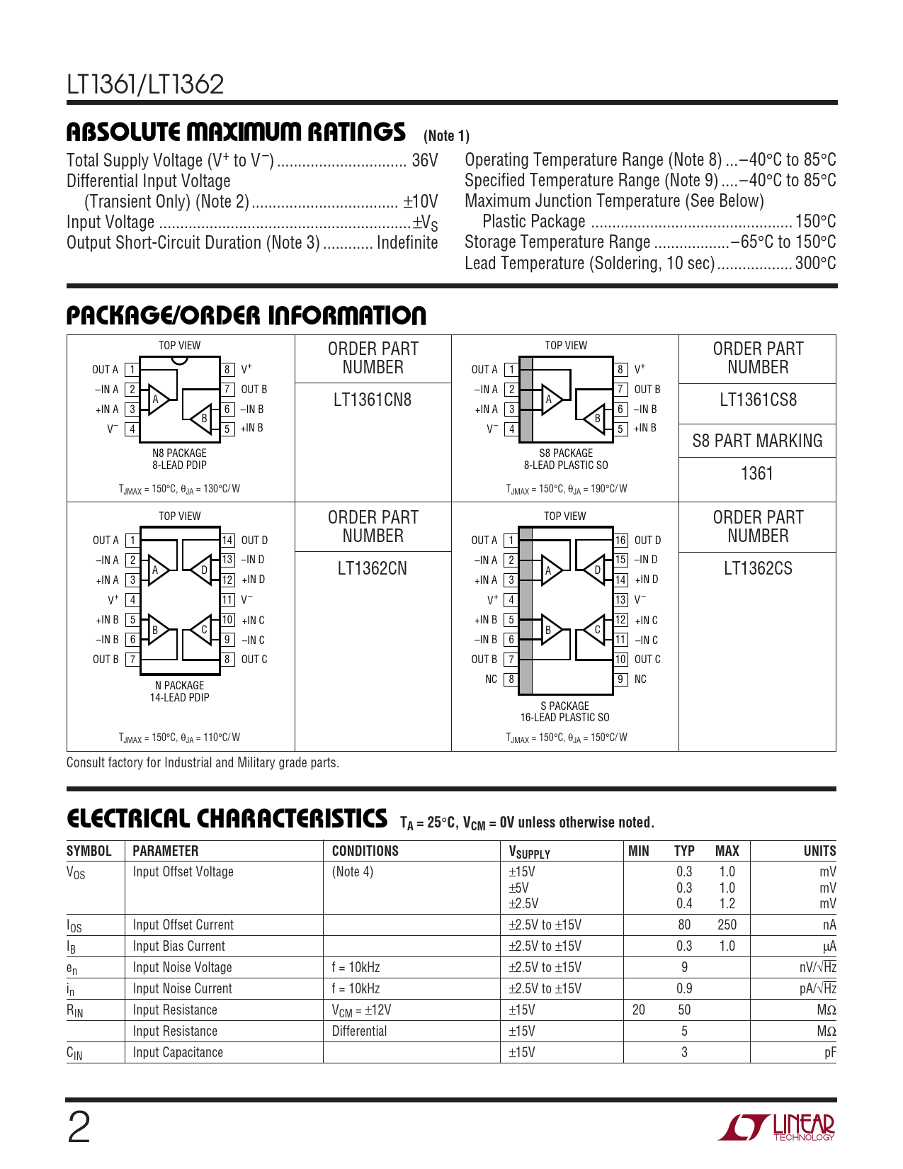 Datasheet LT1361, LT1362 (Analog Devices) - 2