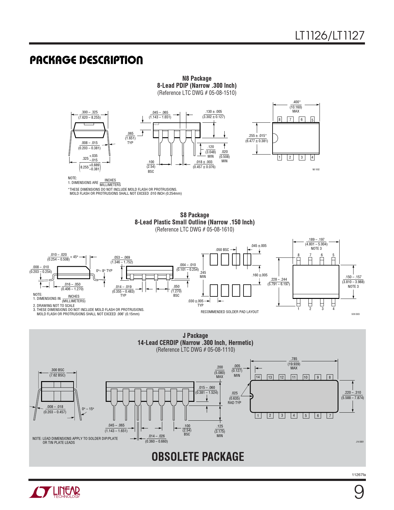 (Reference LTC DWG # 05-08-1110) .785 (19.939) .200 .005 MAX .300 BSC (0.127) (5.080) (7.62 BSC) MAX MIN 14 13 12 11 10 9 8 .015 – .060 (0.381 – 1.524) .025 .220 – .310 (0.635) (5.588 – 7.874) RAD TYP .008 – .018 0° – 15° (0.203 – 0.457) 1 2 3 4 5 6 7 .045 – .065 .100 .125 (1.143 – 1.651) (2.54) (3.175) BSC .014 – .026 MIN NOTE: LEAD DIMENSIONS APPLY TO SOLDER DIP/PLATE (0.360 – 0.660) J14 0801 OR TIN PLATE LEADS