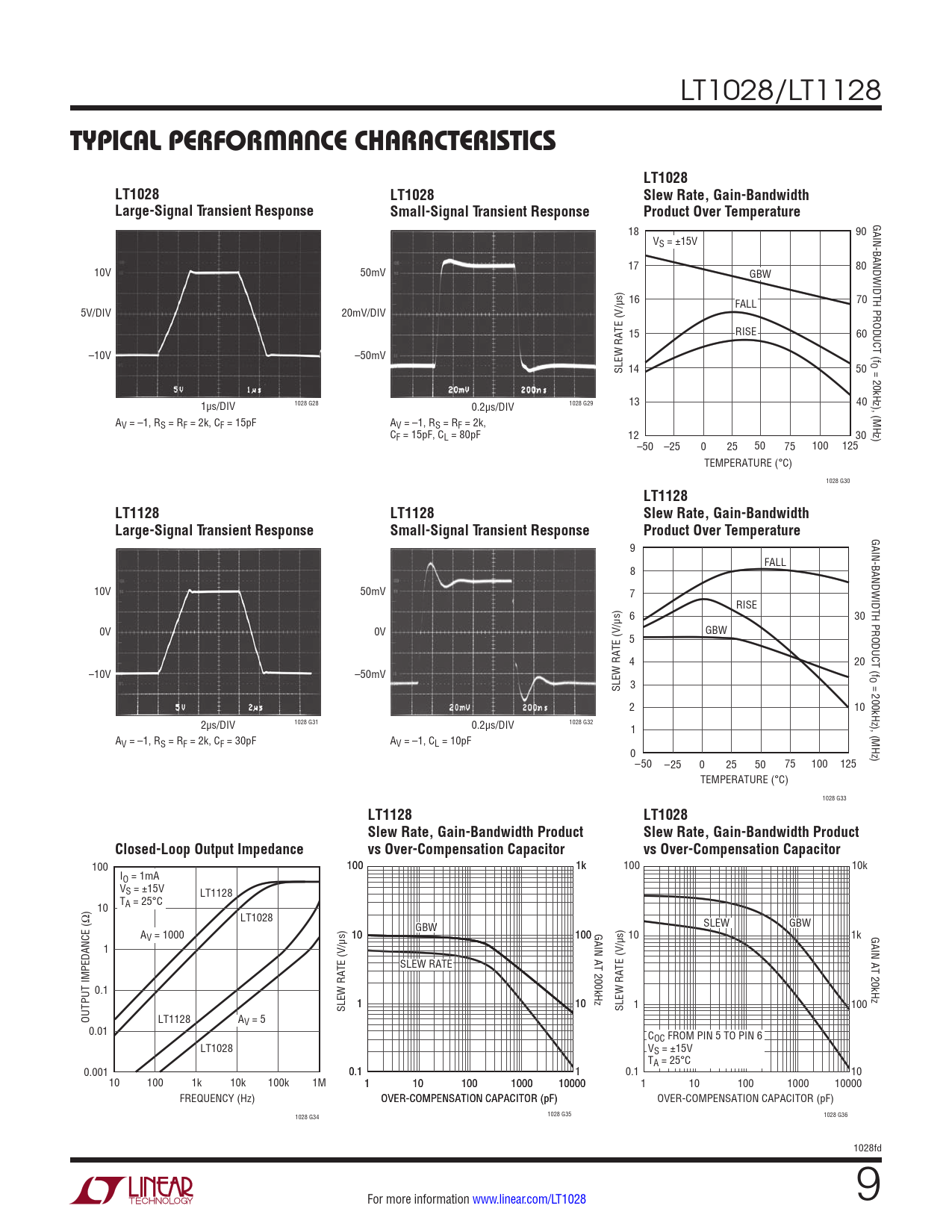 | 页数 / 页 | 28 / 9 — TYPICAL PERFORMANCE CHARACTERISTICS. LT1028. Slew Rate, Gain-Bandwidth. … |