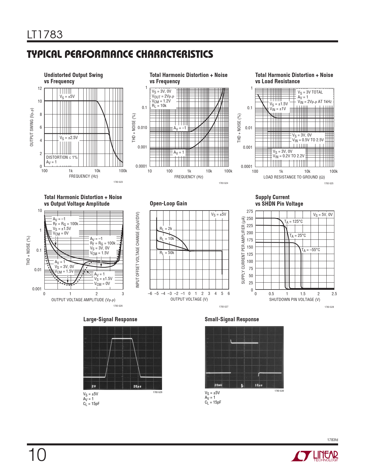 1783 G30 V 1783 G29 V S = ±5V S = ±5V A A V = 1 V = 1 C C L = 15pF L = 15pF 1783fd 10
