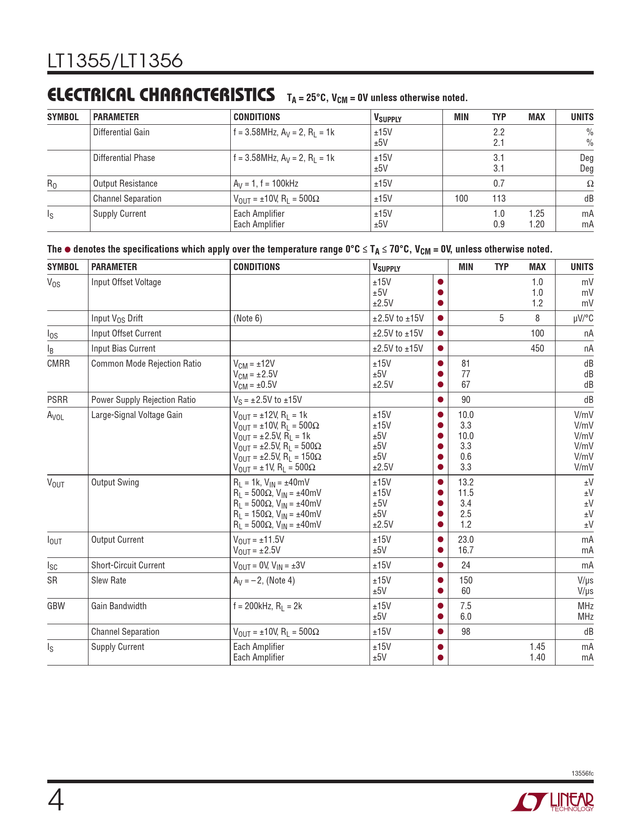 Datasheet LT1355, LT1356 (Analog Devices) - 4