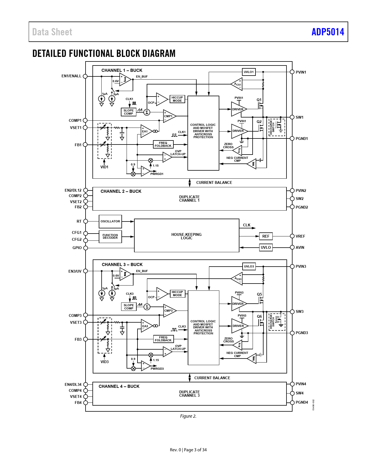 | 页数 / 页 | 34 / 3 — Data Sheet. ADP5014. DETAILED FUNCTIONAL BLOCK DIAGRAM. CHANNEL 1 – BUCK. … |