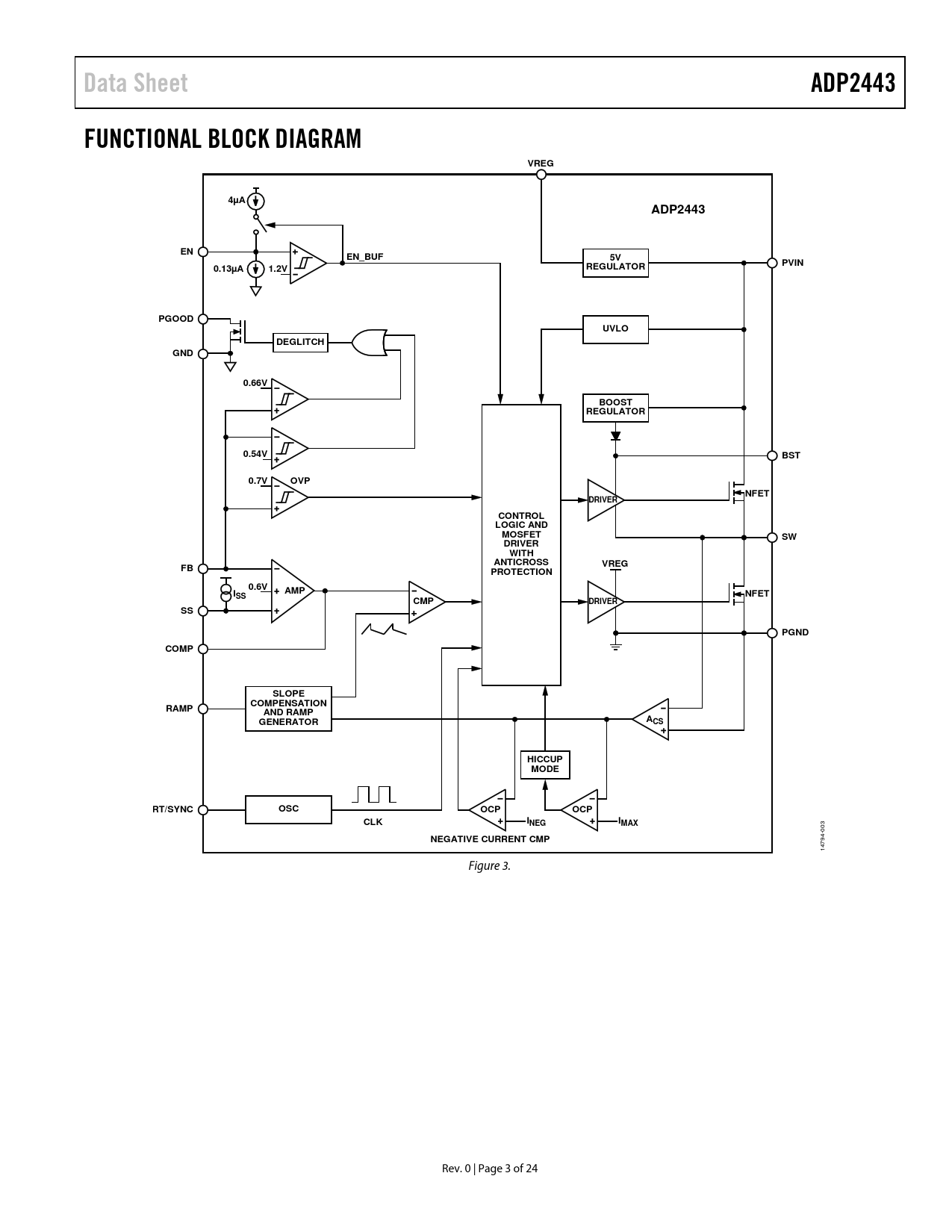| 页数 / 页 | 24 / 3 — Data Sheet. ADP2443. FUNCTIONAL BLOCK DIAGRAM. VREG. 4µA. EN_BUF. PVIN. … |