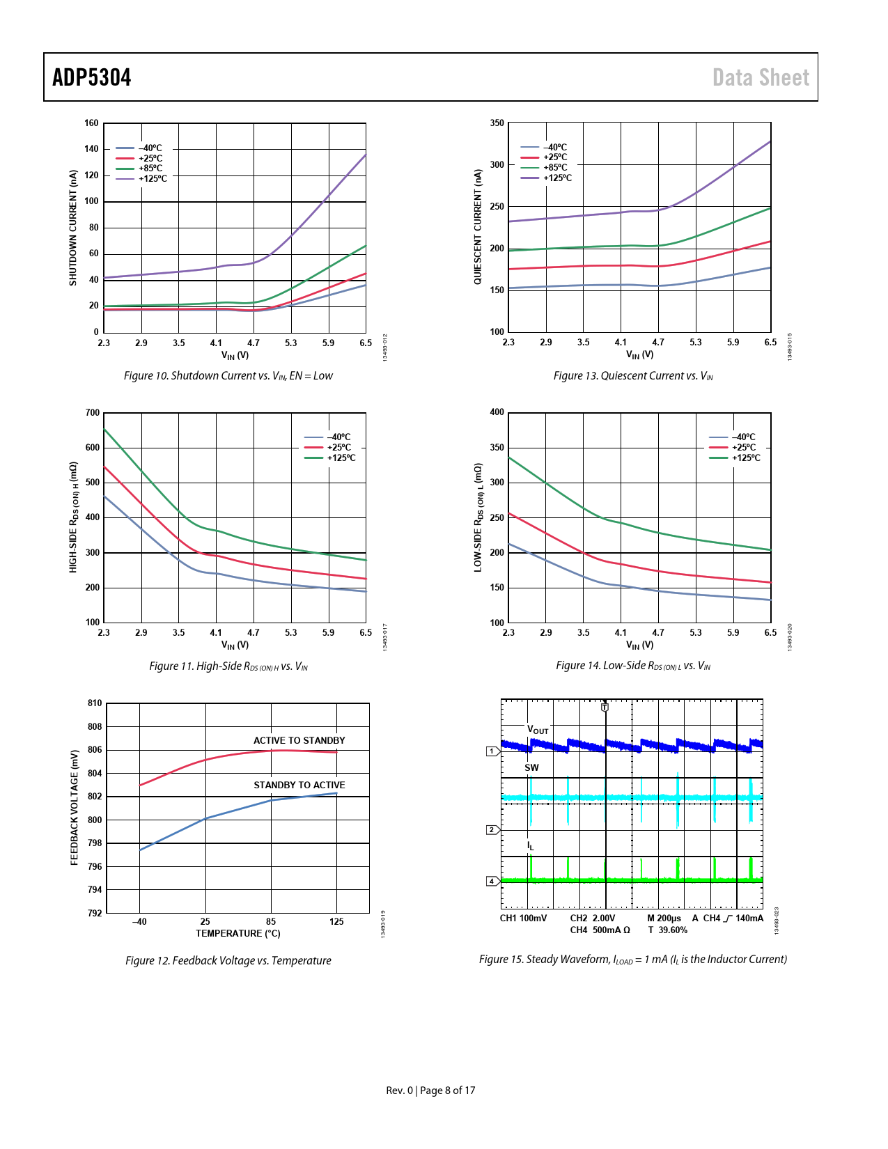 ADP5304. Data Sheet. 160. 350. 140. –40ºC. +25ºC. +85ºC. 300. A) 120. +125ºC. T N 100. NT 250. RRE. N CURRE. 200. CE S E. HUT. Q 150. 100. 2.3. 2.9. 3.5. 4.1. 4.7. 5.3