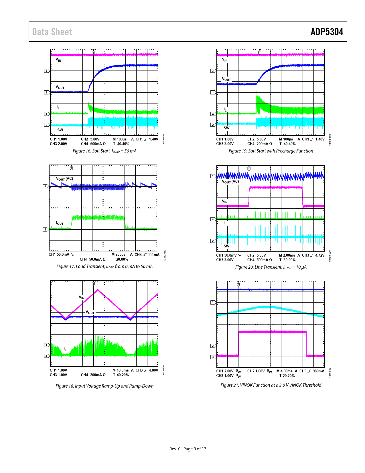 | 页数 / 页 | 17 / 9 — Data Sheet. ADP5304. VIN. VOUT. CH1 1.00V. CH2 5.00V. M 100µs. A CH1 … |