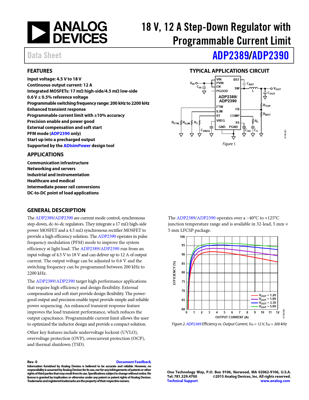 18 V, 12 A Step-Down Regulator with. Programmable Current Limit. Data Sheet. ADP2389. /ADP2390. FEATURES