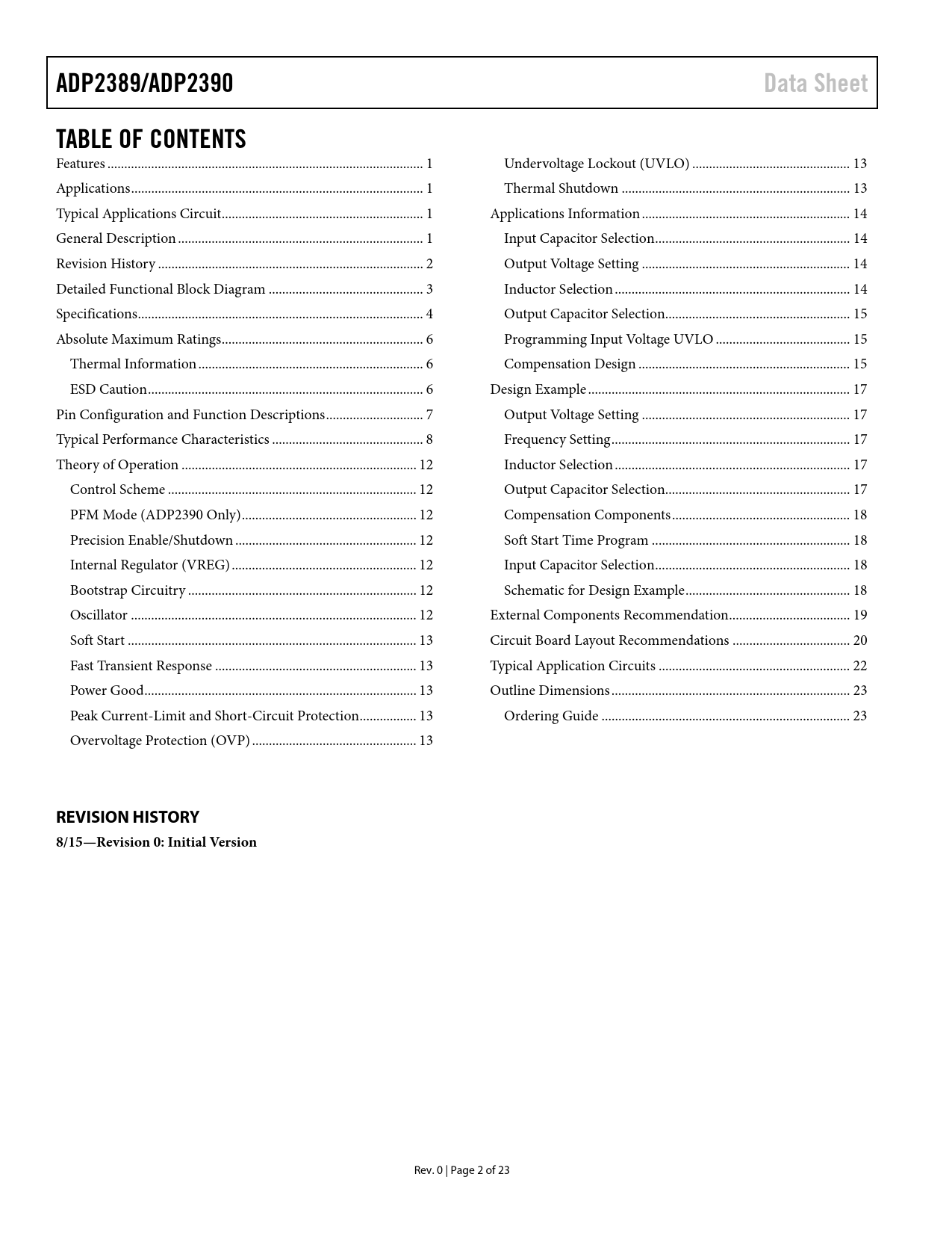 页数 / 页23 / 2 — ADP2389/ADP2390. Data Sheet. TABLE OF CONTENTS. REVISION HISTORY. …