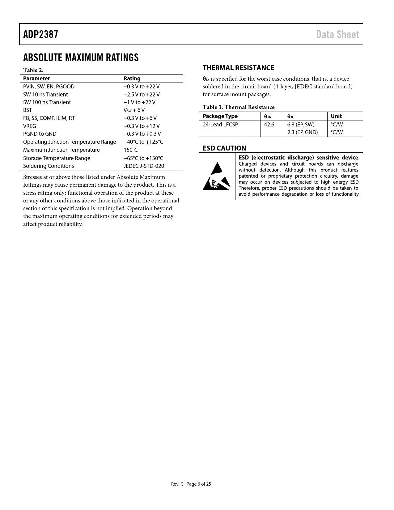 页数 / 页25 / 6 — ADP2387. Data Sheet. ABSOLUTE MAXIMUM RATINGS Table 2. THERMAL …