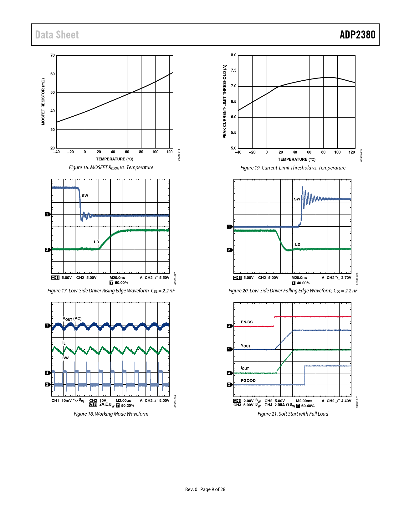 Data Sheet. ADP2380. 8.0. ) A (. 7.5. OLD H. (mΩ. S E. 7.0. T S. IT TH. 6.5. ESI R. -LIM T. 6.0. AK CURRE. 5.5. E P. 5.0. –40. –20. 100. 120. TEMPERATURE (°C)