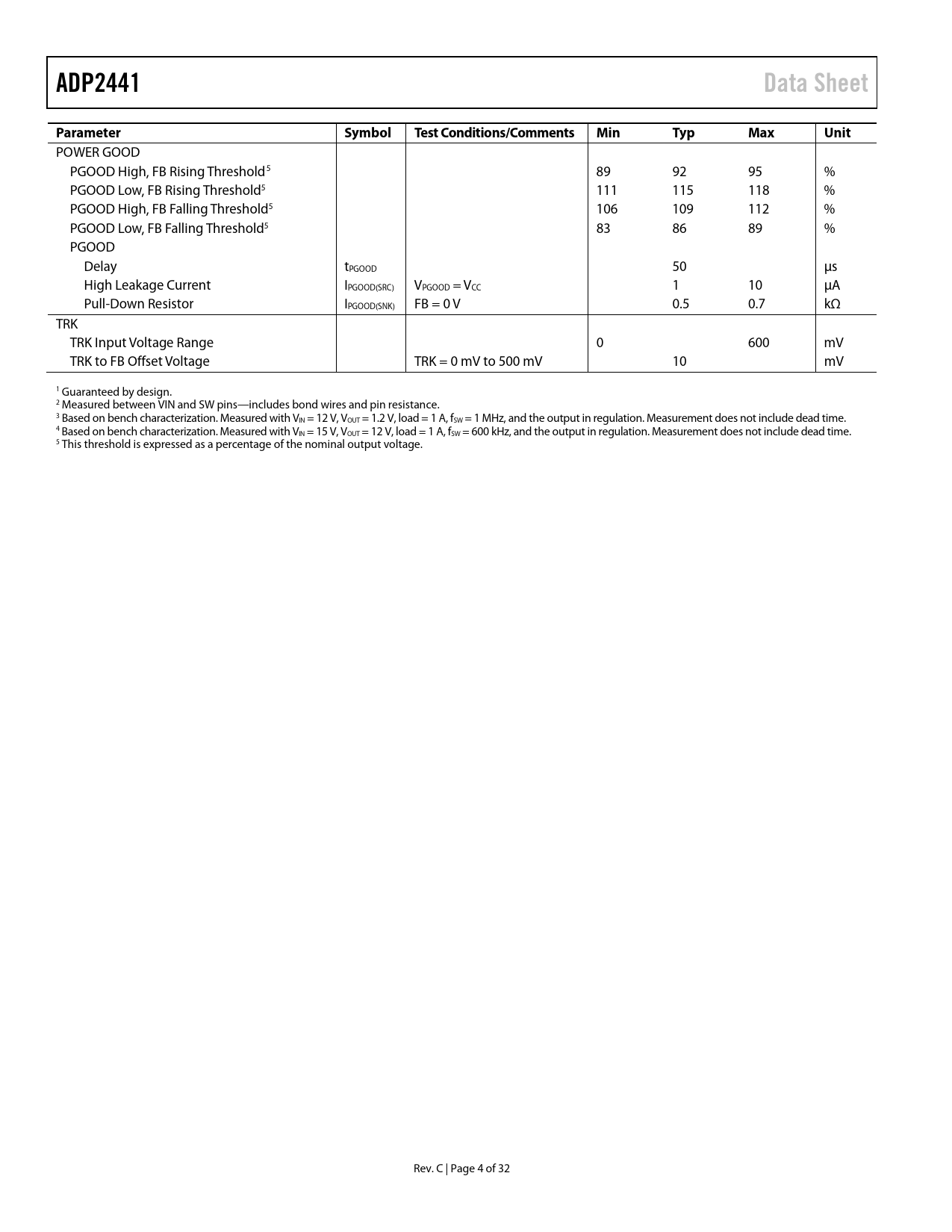 页数 / 页32 / 4 — ADP2441. Data Sheet. Parameter. Symbol. Test Conditions/Comments. Min. …