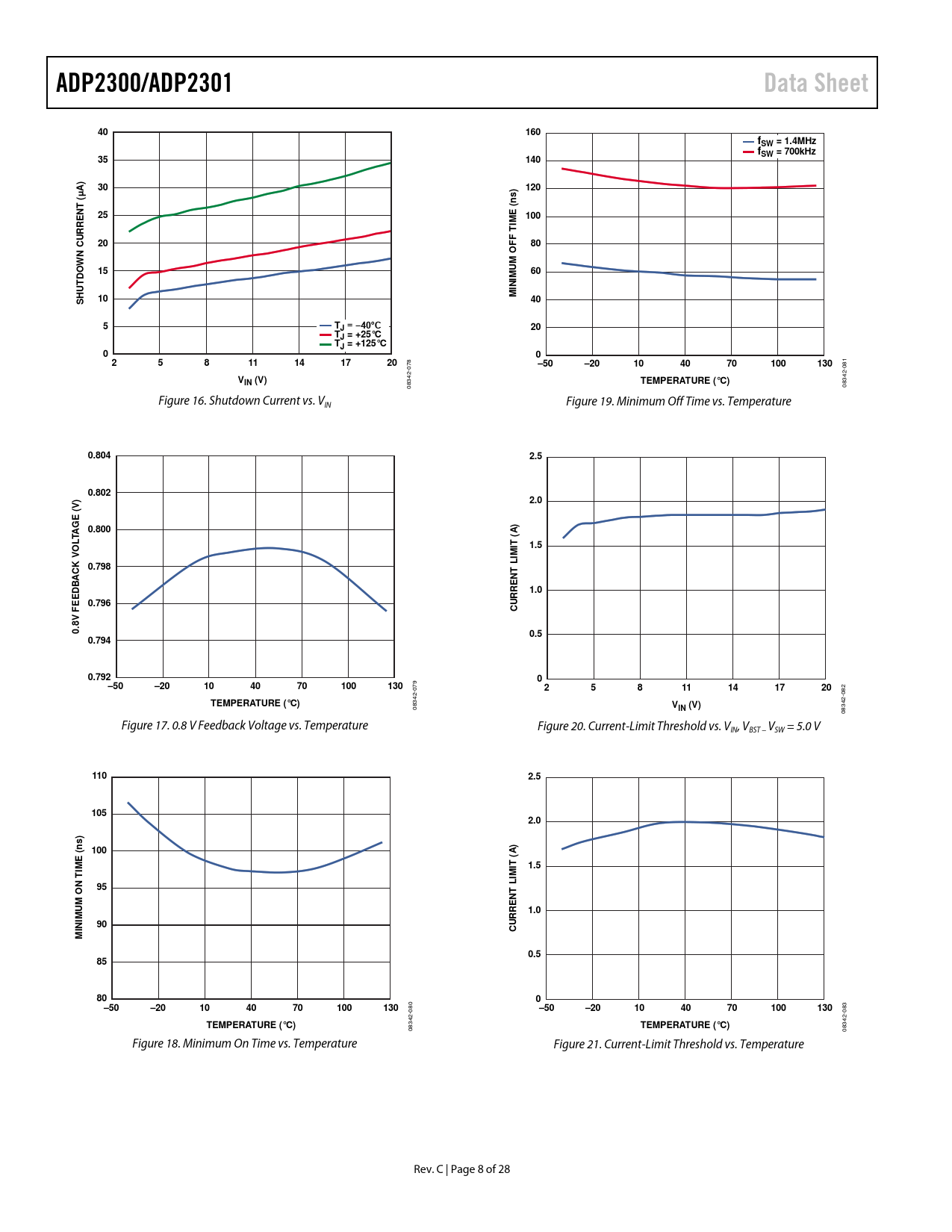 ADP2300/ADP2301. Data Sheet. 160. fSW = 1.4MHz. fSW = 700kHz. 140. 120. µ (. ns (. 100. N CURRE. OFF TIM. IM IN. HUT. TJ = −40°C. TJ = +25°C