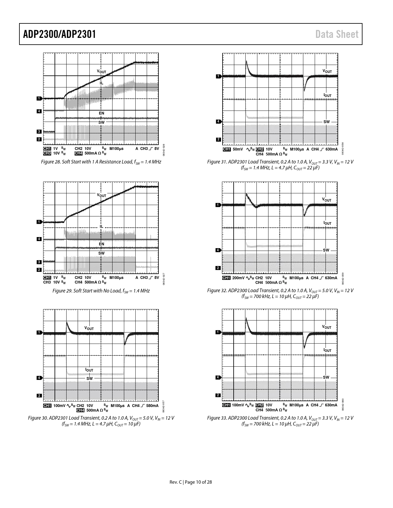 | 页数 / 页 | 28 / 10 — ADP2300/ADP2301. Data Sheet. OUT. IOUT. CH1 1V B. CH2 10V. M100µs. A CH3 … |