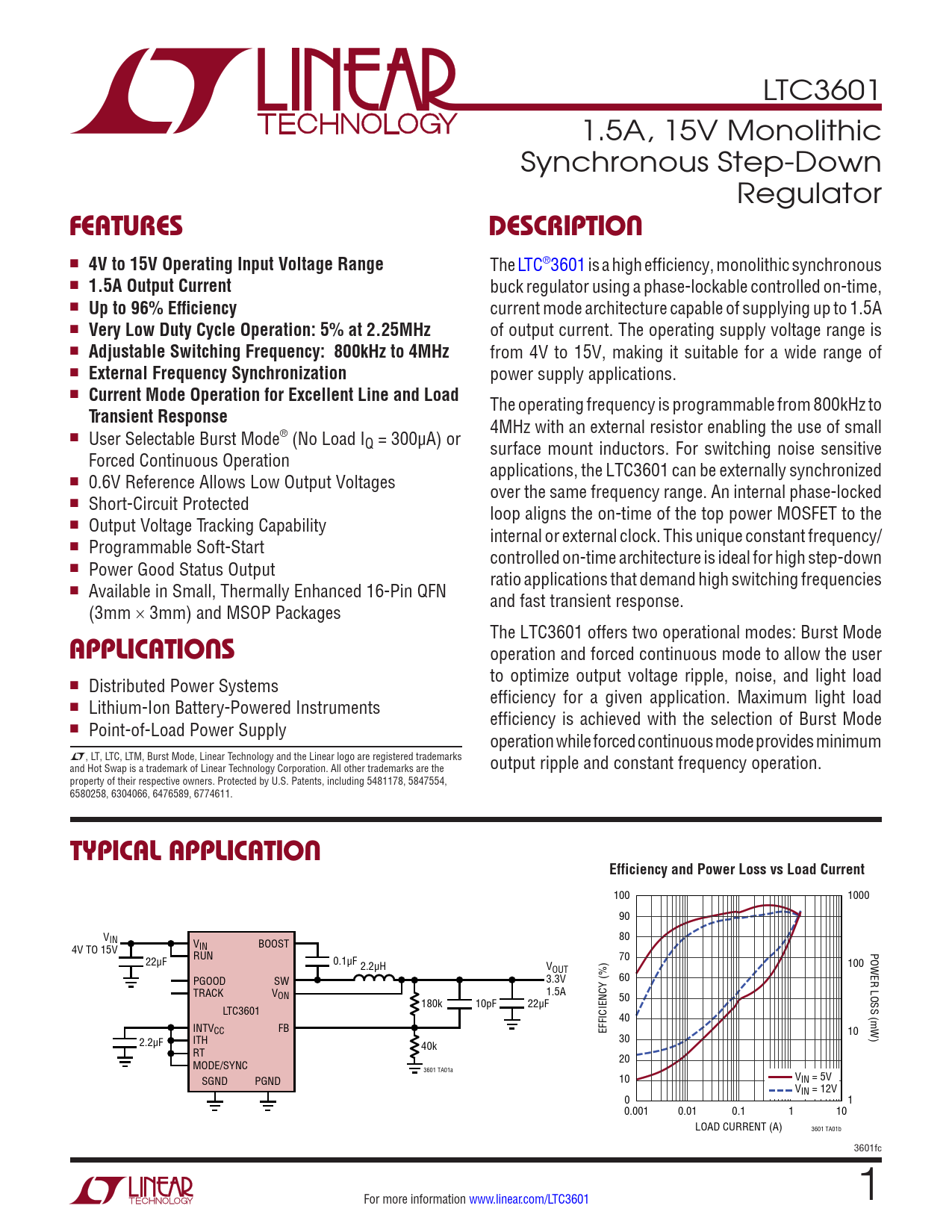 The LTC®3601 is a high efficiency, monolithic synchronous n