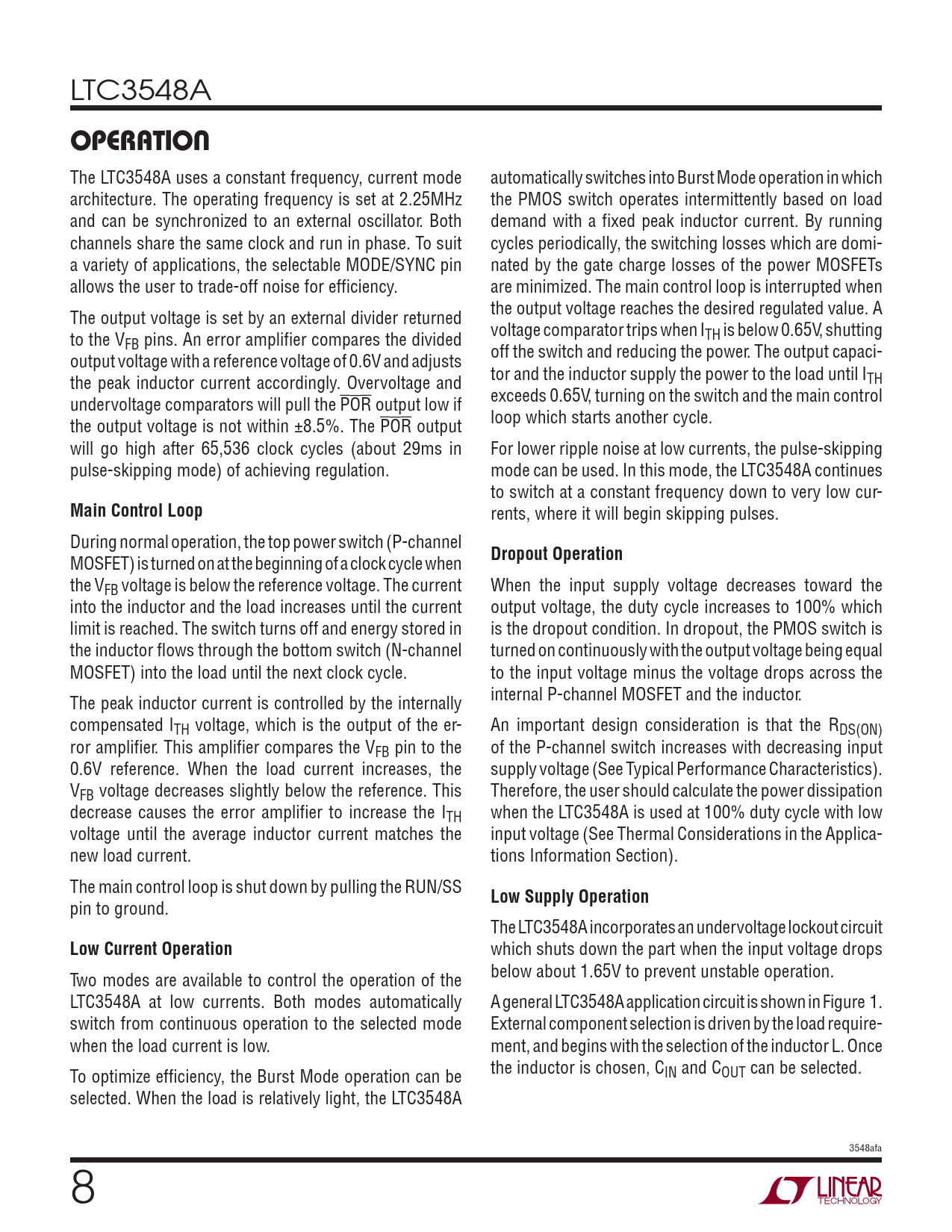 页数 / 页20 / 8 — OPERATION. Main Control Loop. Dropout Operation. Low Supply Operation. …