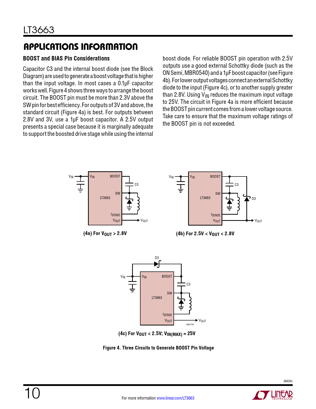 (4c) For VOUT < 2.5V; VIN(MAX) = 25V Figure 4. Three Circuits to Generate BOOST Pin Voltage