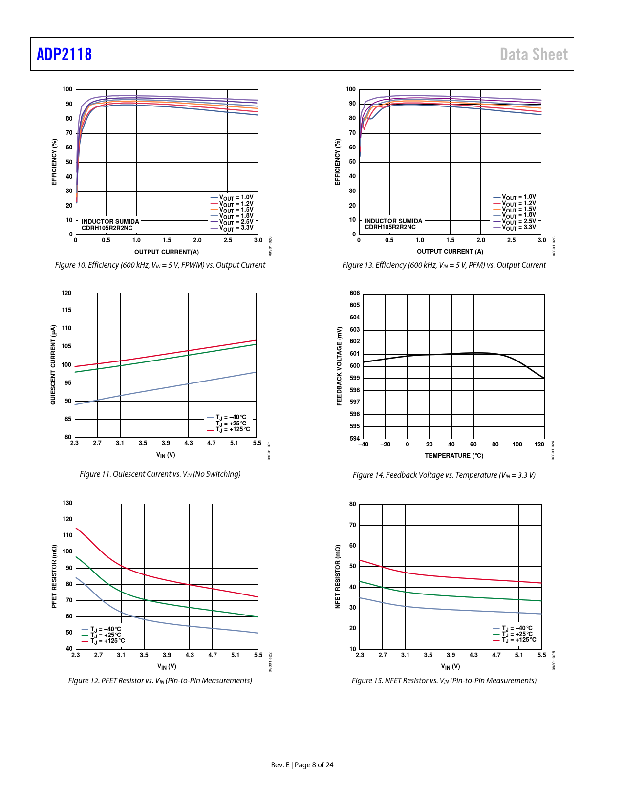 ADP2118. Data Sheet. 100. FFIC. OUT = 1.0V. OUT = 1.2V. OUT = 1.5V. VOUT = 1.8V. OUT = 1.8V. INDUCTOR SUMIDA. OUT = 2.5V. CDRH105R2R2NC