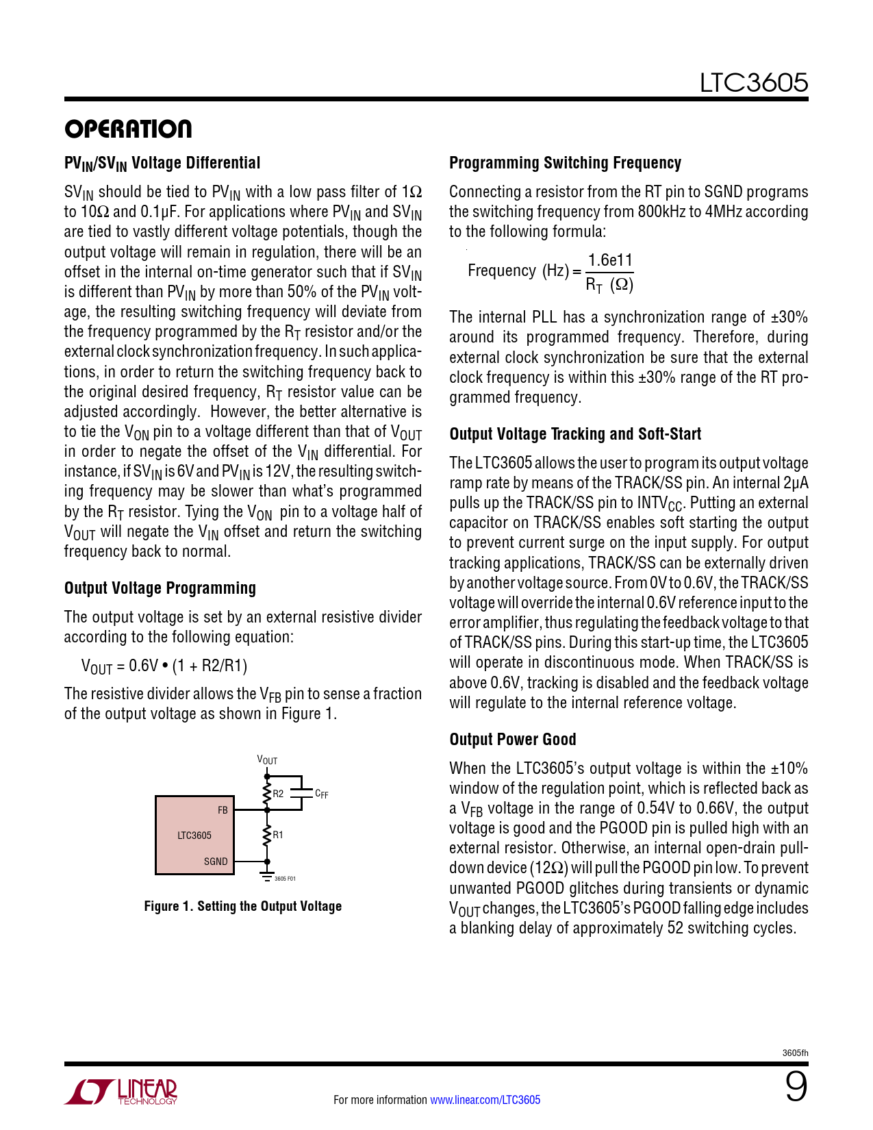 operaTion PVIN/SVIN Voltage Differential. Programming Switching Frequency. Output Voltage Tracking and Soft-Start