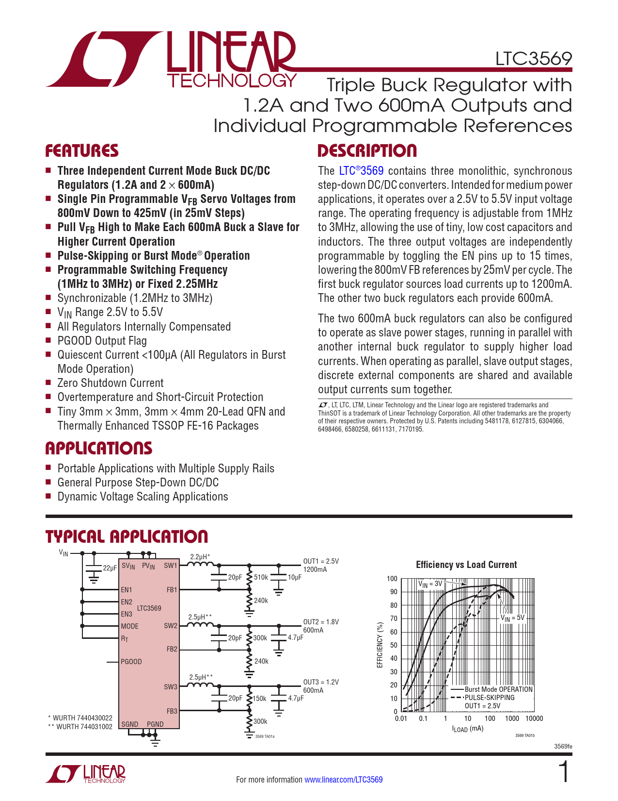 LTC3569 Triple Buck Regulator with 1.2A and Two 600mA Outputs and Individual Programmable References