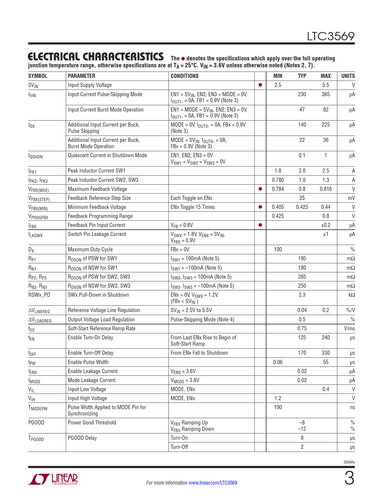 denotes the specifications which apply over the full operating junction temperature range, otherwise specifications are at TA = 25°C. VIN = 3.6V unless otherwise noted (Notes 2, 7). SYMBOL PARAMETER CONDITIONS MIN TYP MAX UNITS