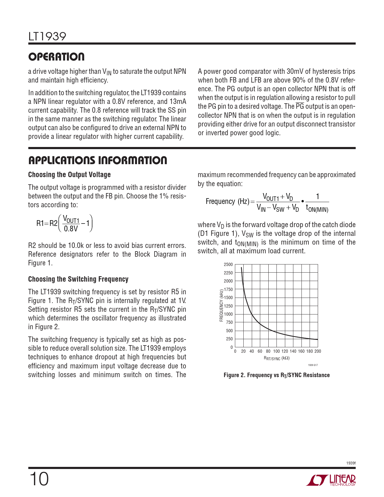 OPERATION APPLICATIONS INFORMATION Choosing the Output Voltage Choosing the Switching Frequency