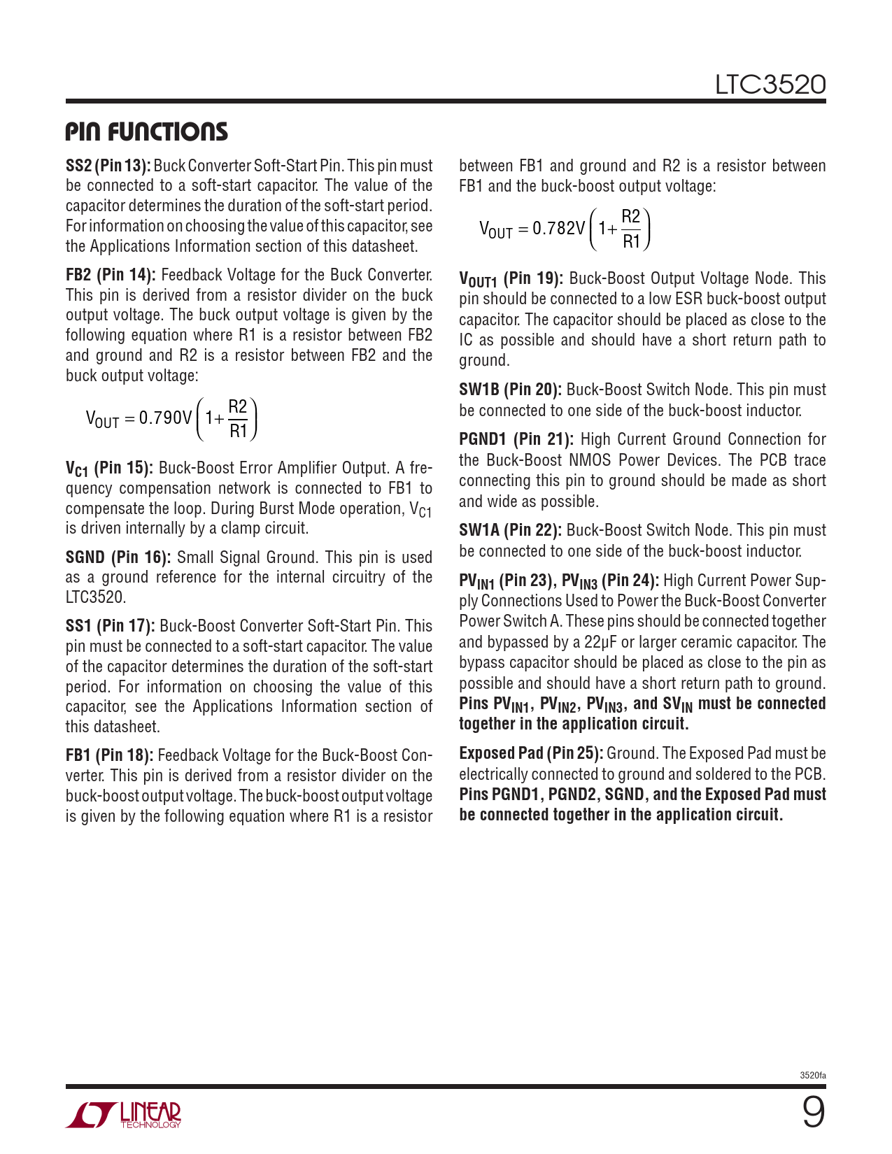 PIN FUNCTIONS. SS2 (Pin 13):. FB2 (Pin 14):. VOUT1 (Pin 19):. SW1B (Pin 20):. PGND1 (Pin 21):. C1 (Pin 15):. SW1A (Pin 22):