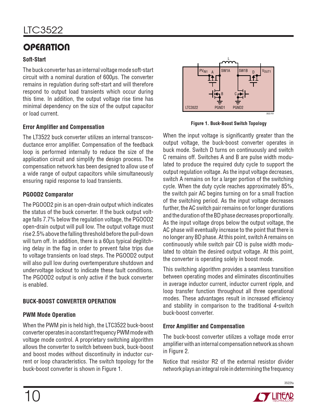 OPERATION. Soft-Start. Figure 1. Buck-Boost Switch Topology. Error Amplifi er and Compensation. PGOOD2 Comparator