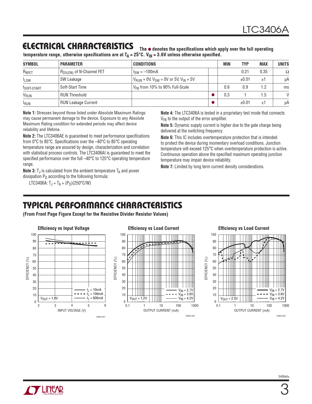 The LTC3406AE is guaranteed to meet performance specifi cations