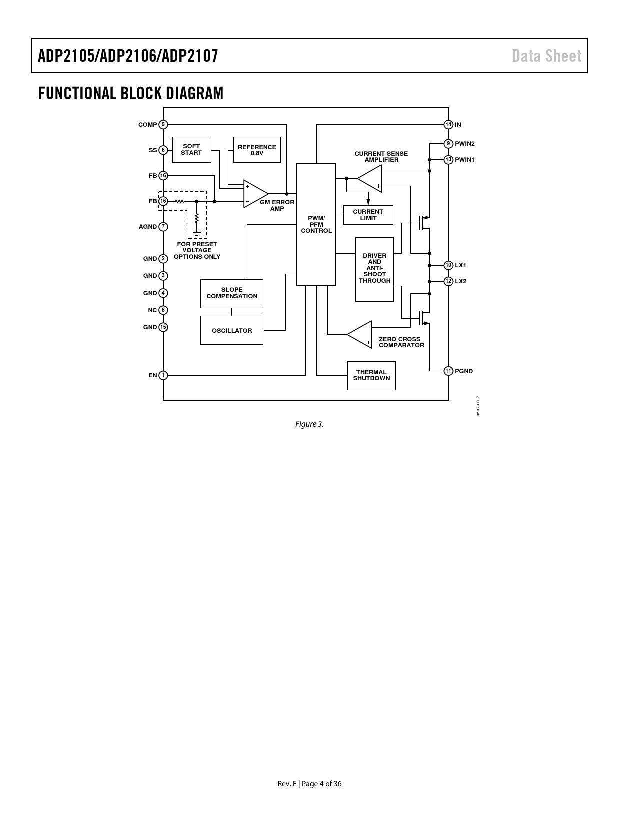 | 页数 / 页 | 36 / 4 — ADP2105/ADP2106/ADP2107. Data Sheet. FUNCTIONAL BLOCK DIAGRAM. COMP 5. 14 … |