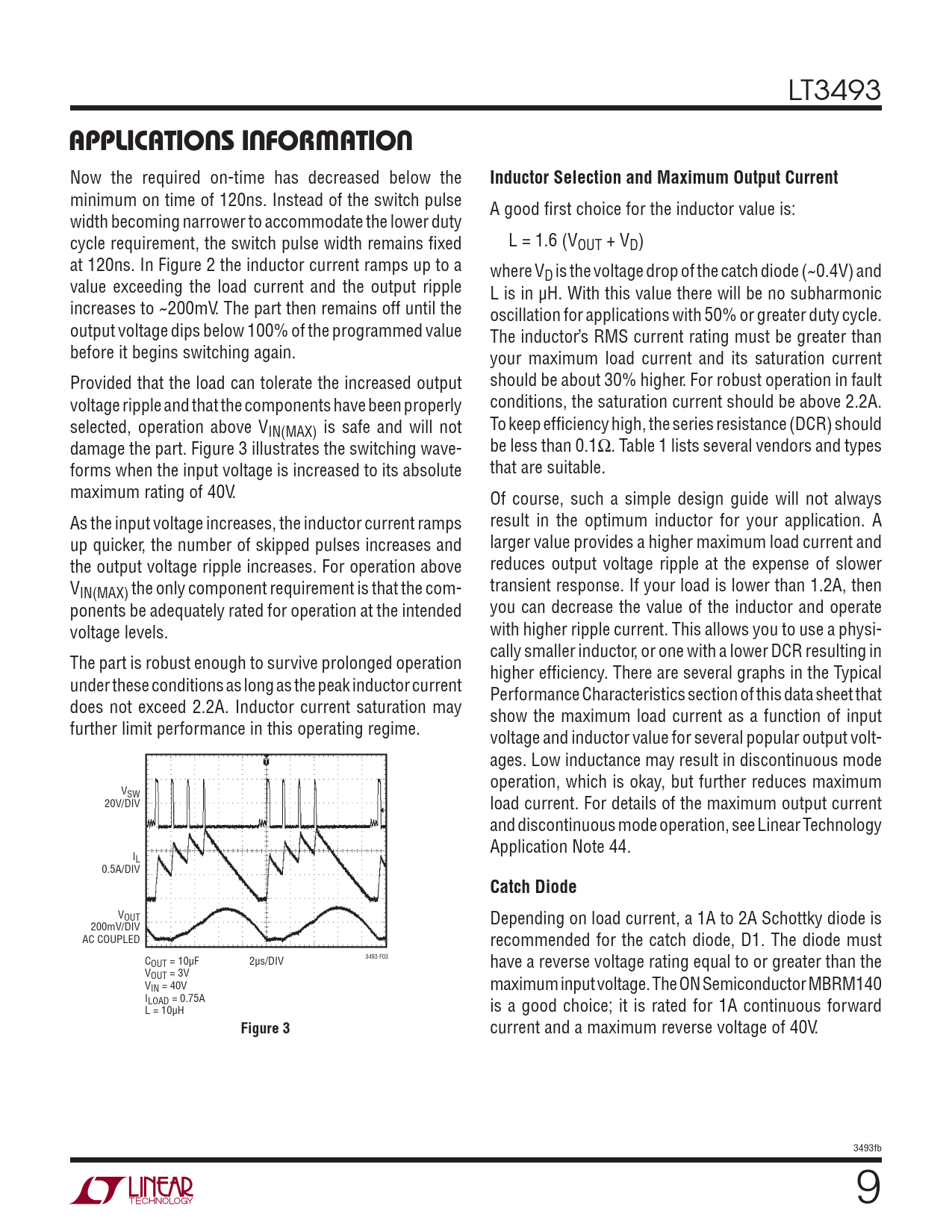 APPLICATIONS INFORMATION Inductor Selection and Maximum Output Current Catch Diode Figure 3