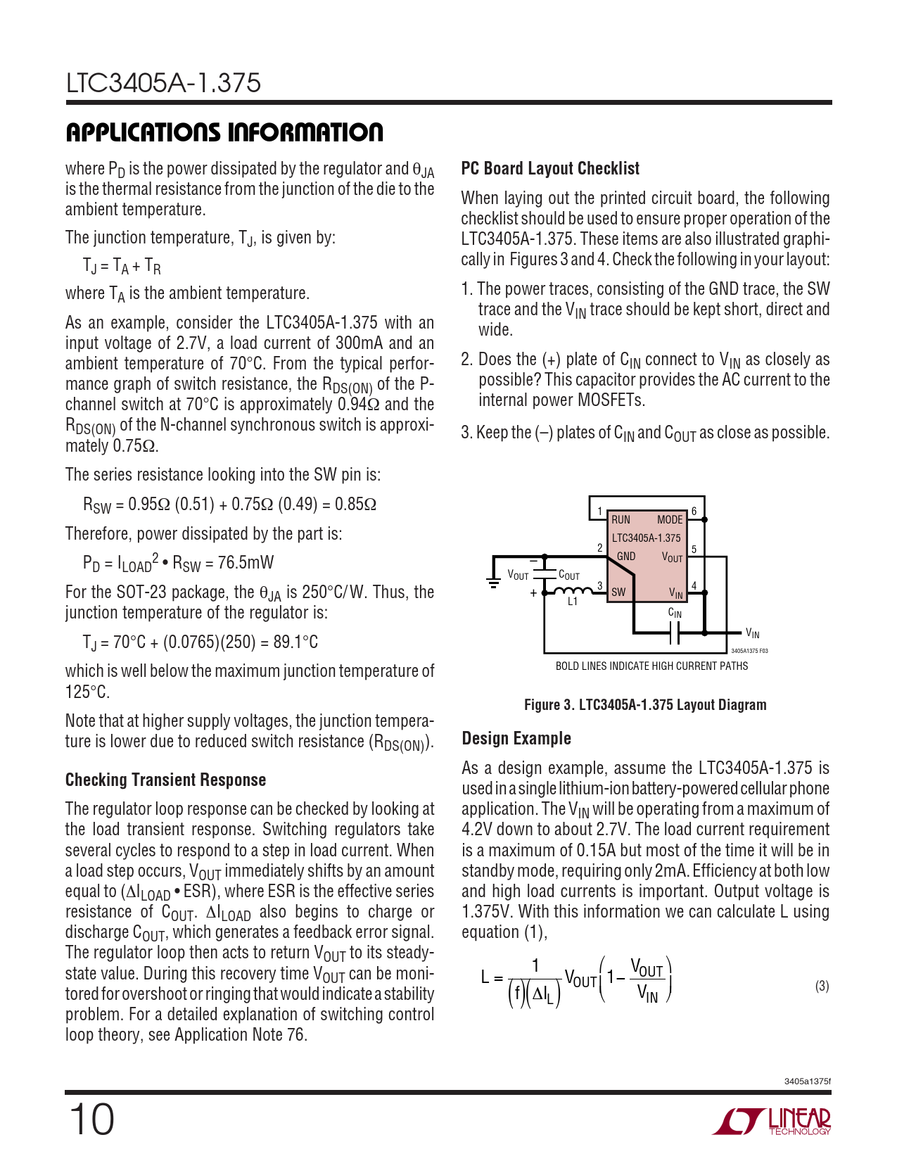 APPLICATIO S I FOR ATIO. PC Board Layout Checklist. Figure 3. LTC3405A-1.375 Layout Diagram. Design Example