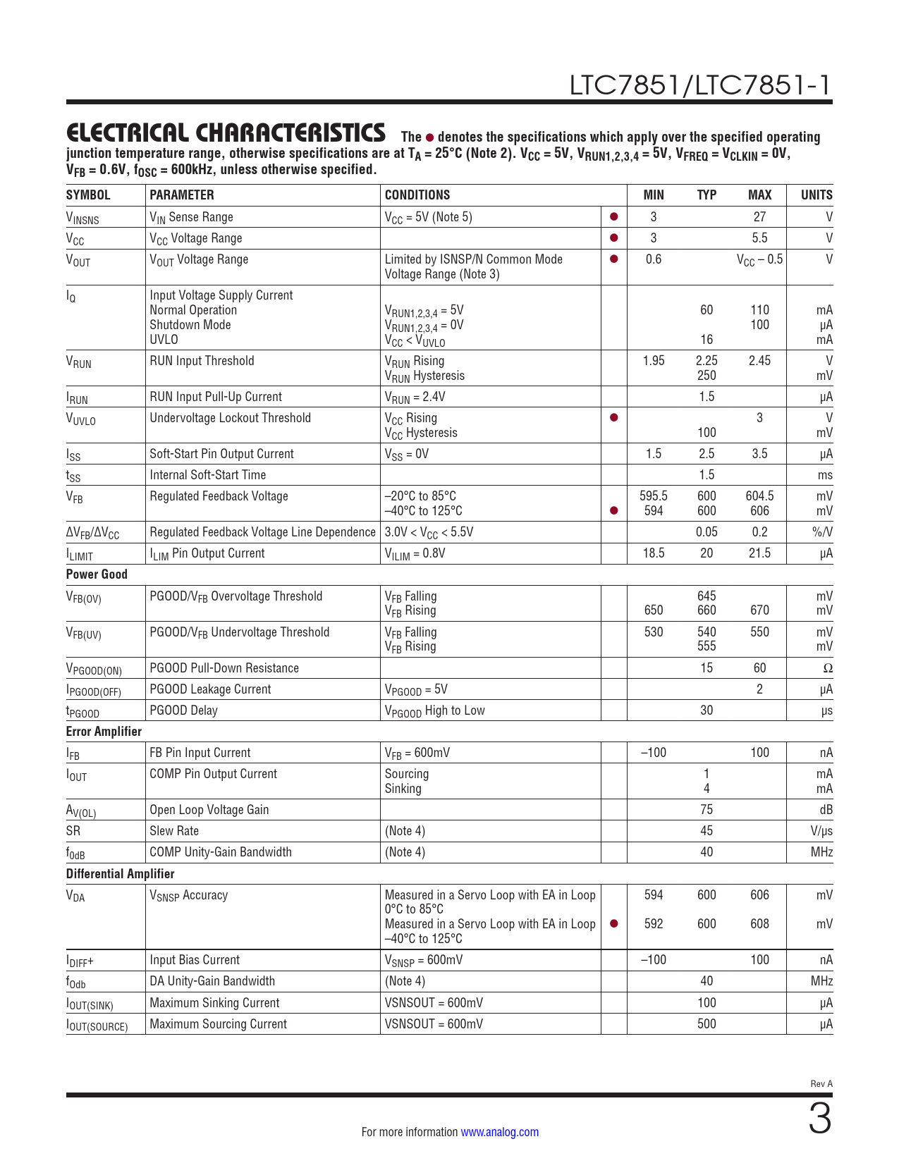 Datasheet LTC7851, LTC7851-1 (Analog Devices) - 3